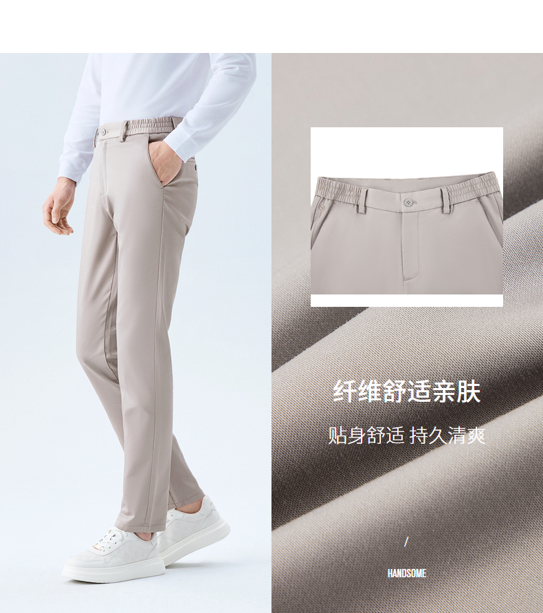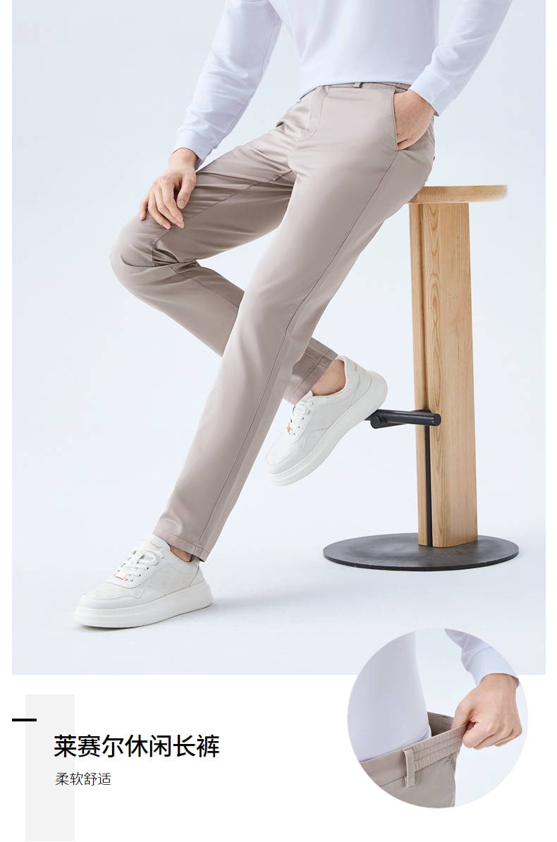 【含莱赛尔/调节腰头】柒牌男士休闲梭织长裤柔软舒适修身男裤子 130H70660