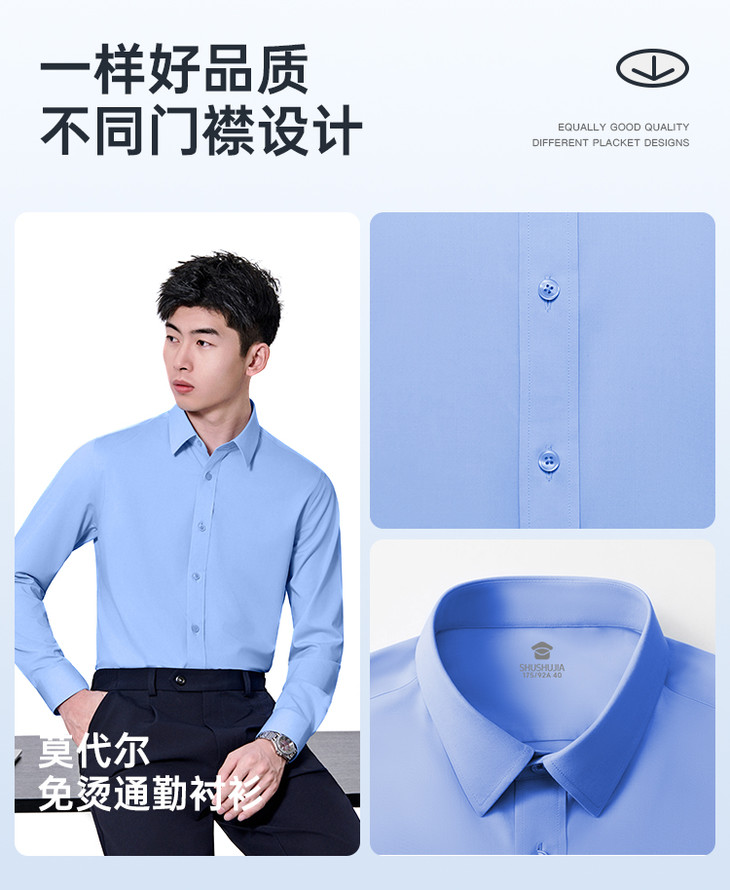 【定海针莫代尔免烫通勤衬衫】商务抗皱免烫长袖衬衫男士0感透气休闲衬衣CZ601