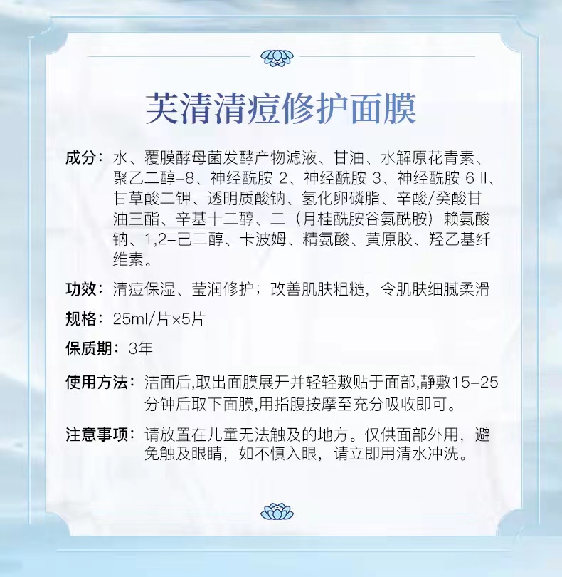 【YZ】芙清祛痘凉茶敷料淡化痤疮去痘印美术保湿消炎修复补水非面膜