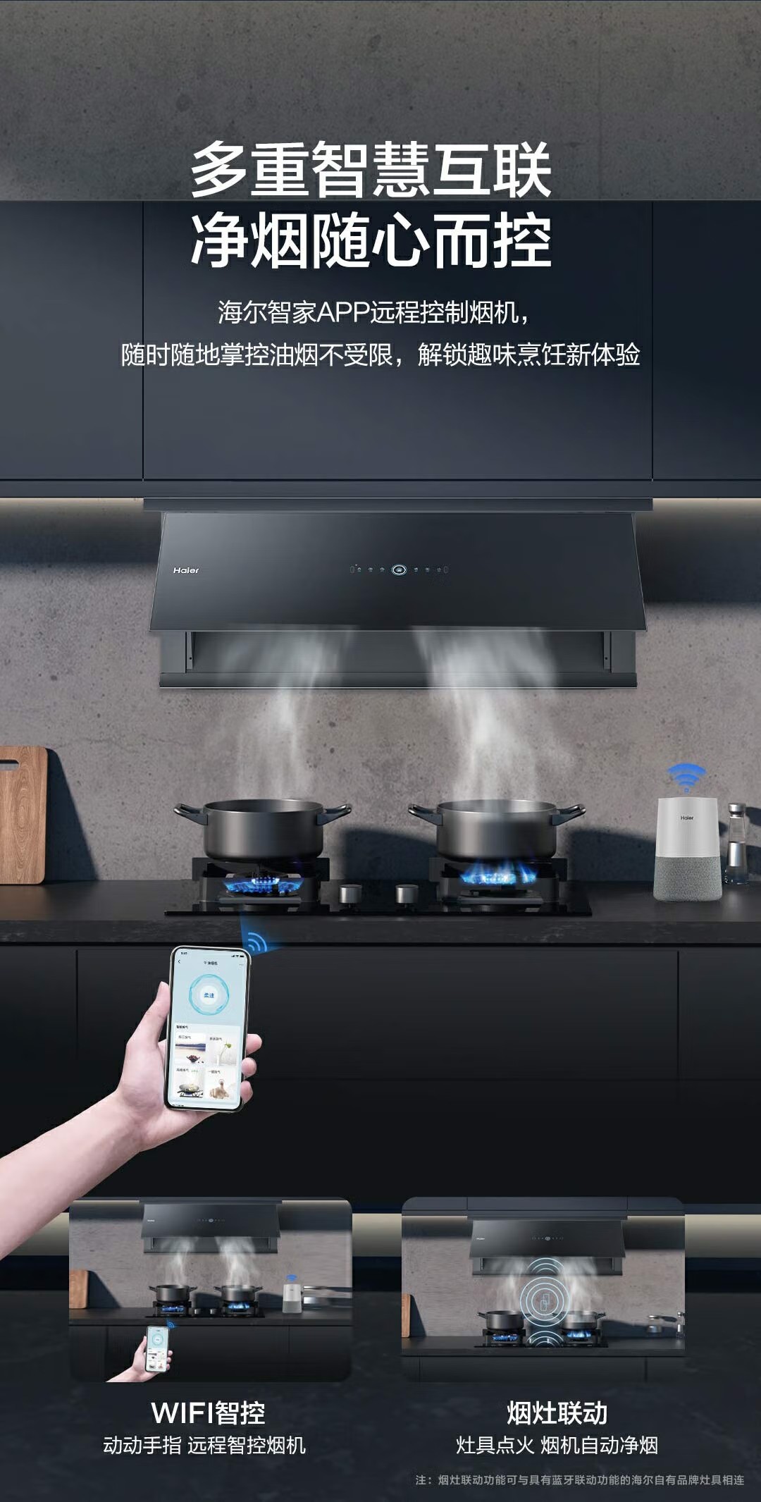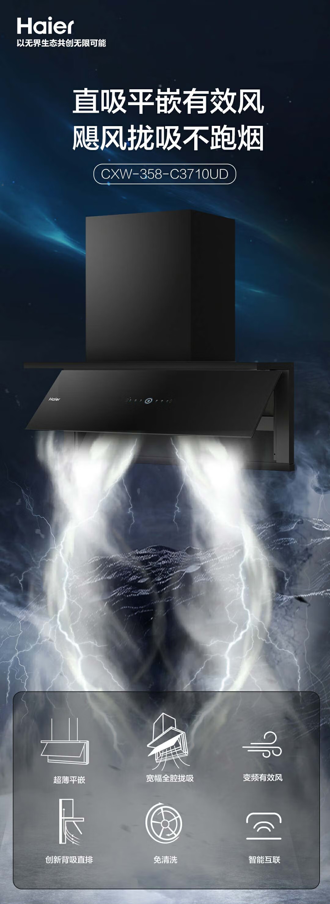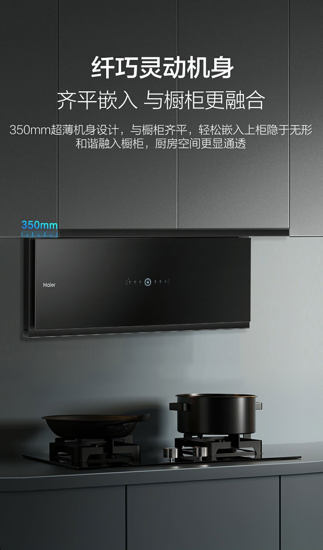 海尔Haier侧吸130超薄350融嵌平嵌7字型抽油烟机爆炒30m³/min最大压1300Pa免清洗智控CXW-358-C3710UD CXW-358-C3710UD