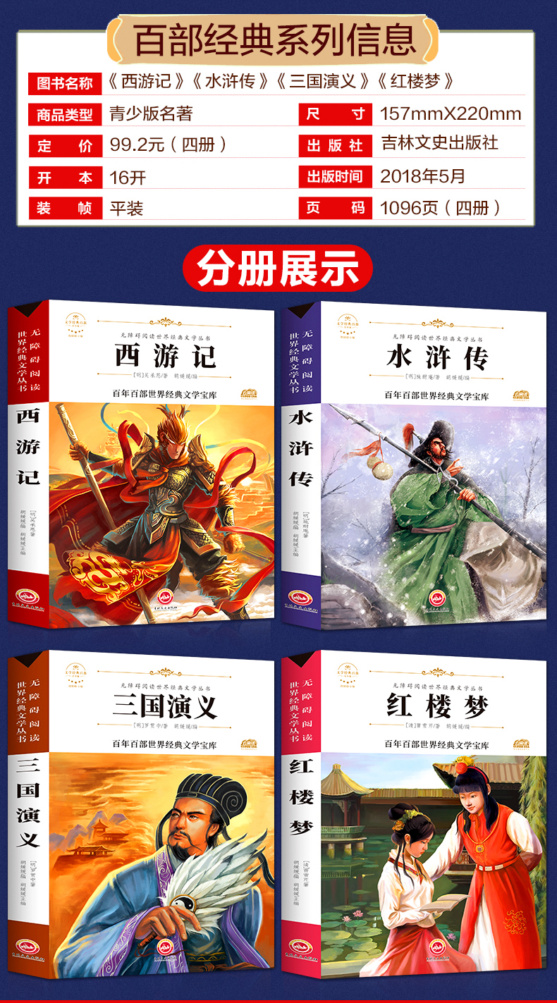 四大名著全套小学生版原著正版青少年版三国演义西游记水浒传学生儿童版快乐读书吧五年级下册必读课外书红楼梦课外阅读书籍读物