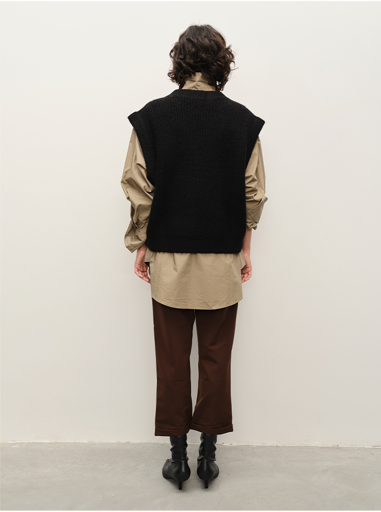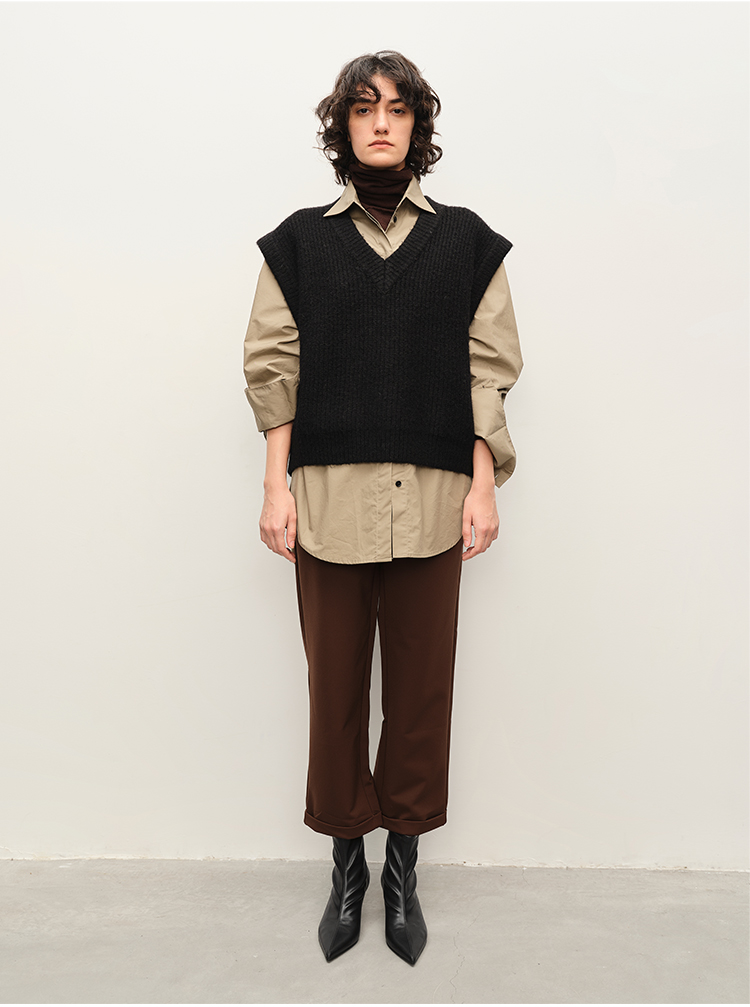 HIDEMI 美利奴超细羊毛立体交叉打结款V领修身毛衣 原白色/深摩卡/黑色