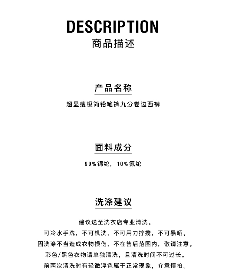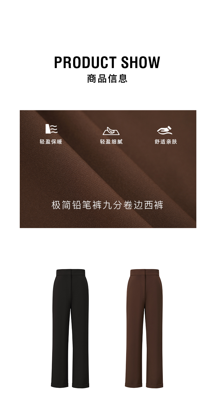超显瘦极简铅笔裤九分卷边西裤 黑色/生巧