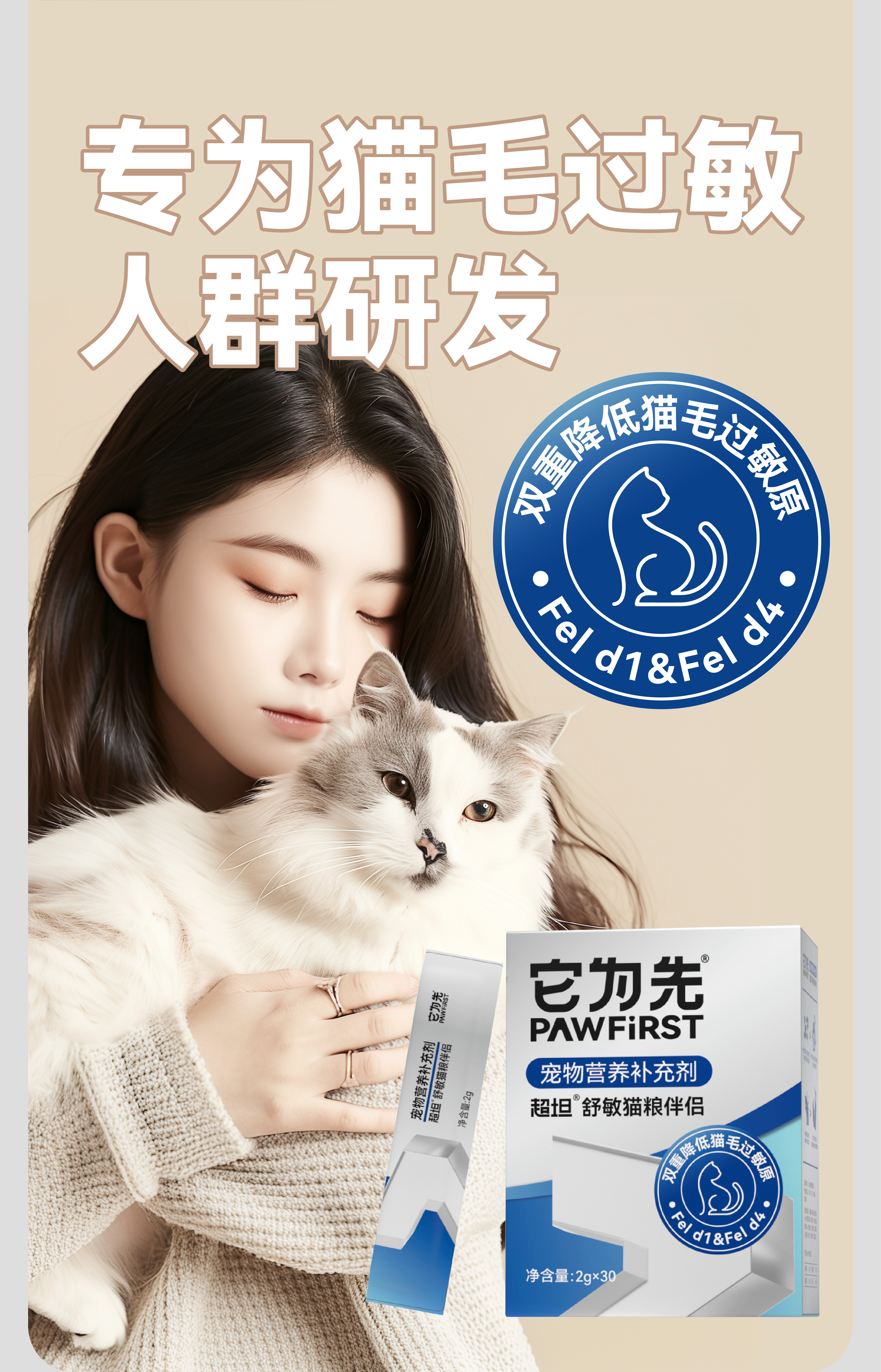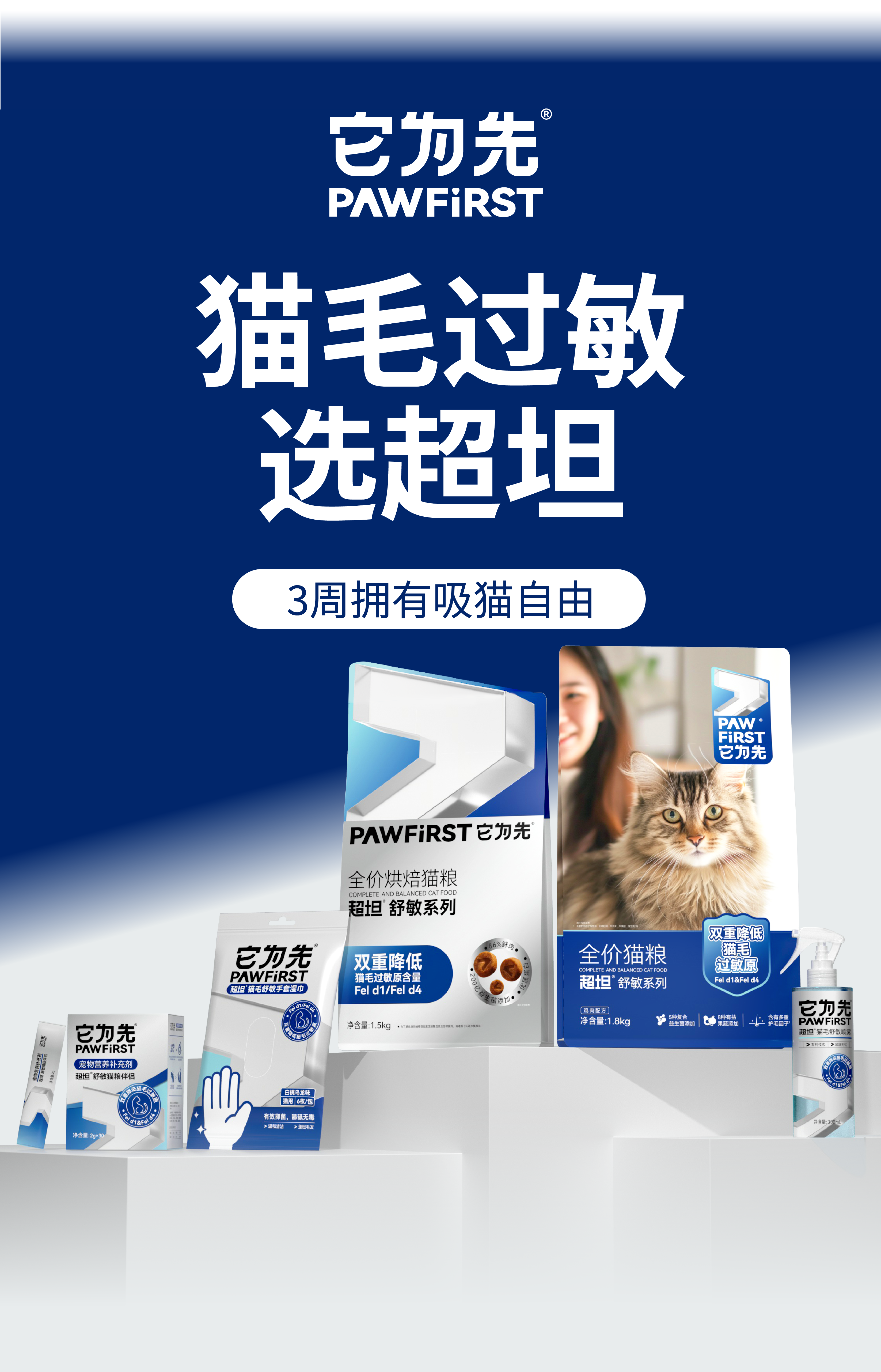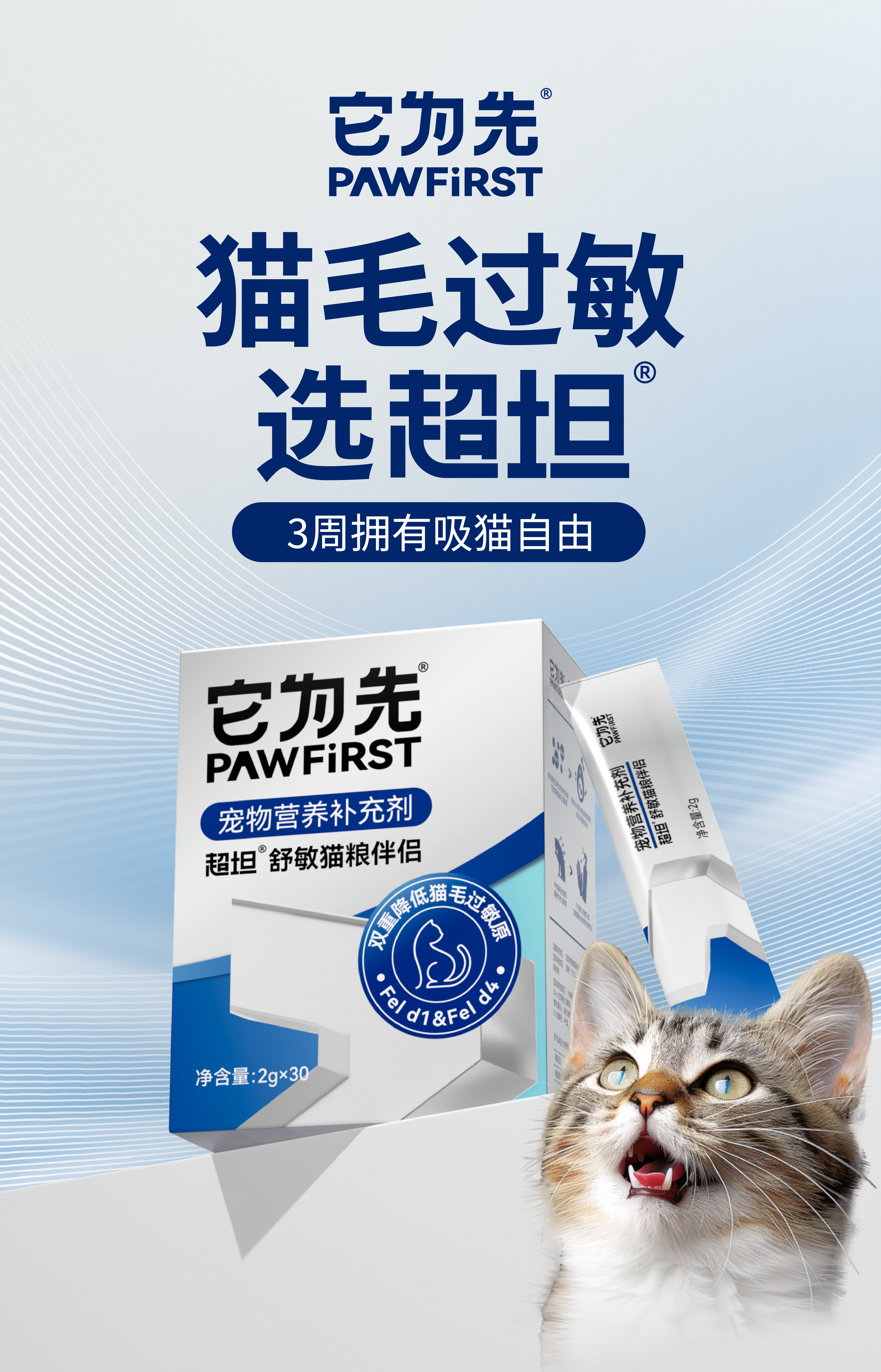 它为先超坦舒敏猫粮伴侣 降低猫毛过敏原 全年龄阶段可用 2gx30袋