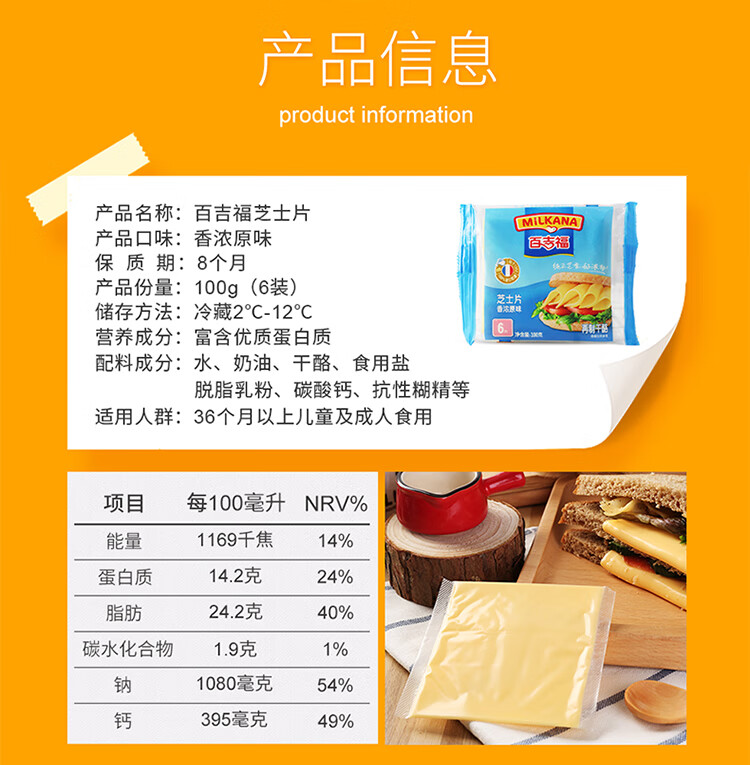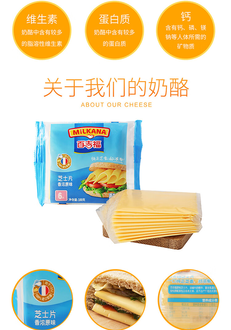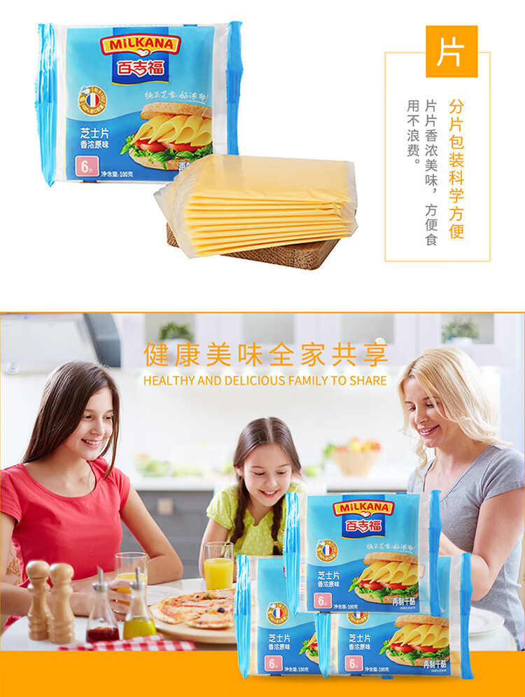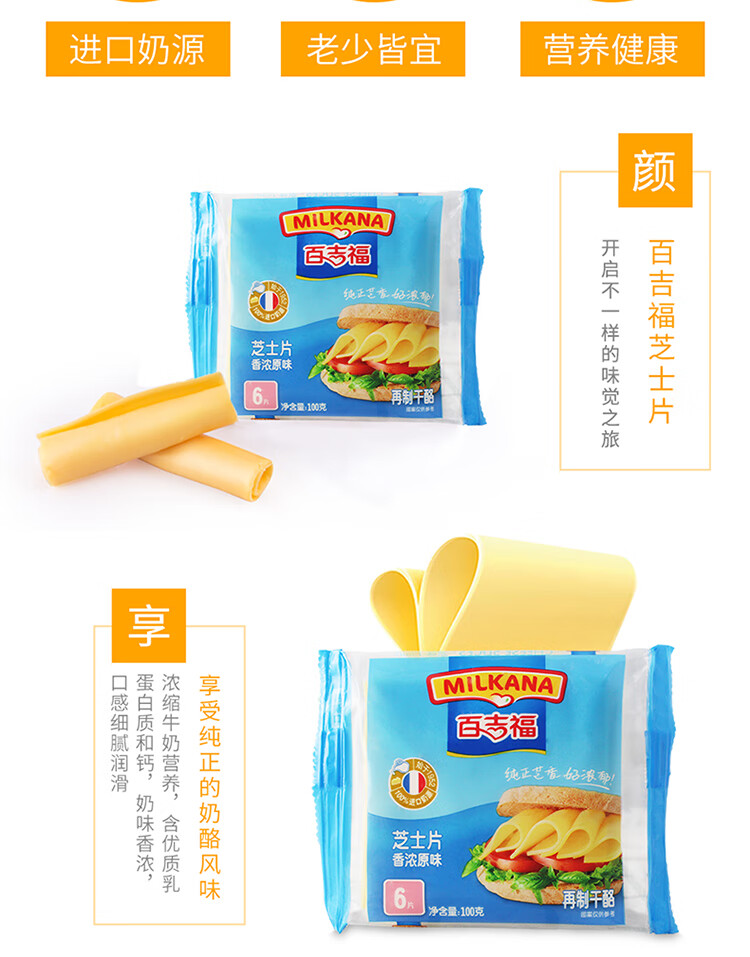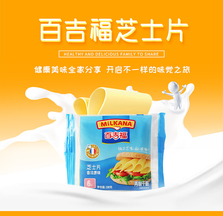 百吉福(MILKANA) 芝士片 香浓原味 100g(6片)