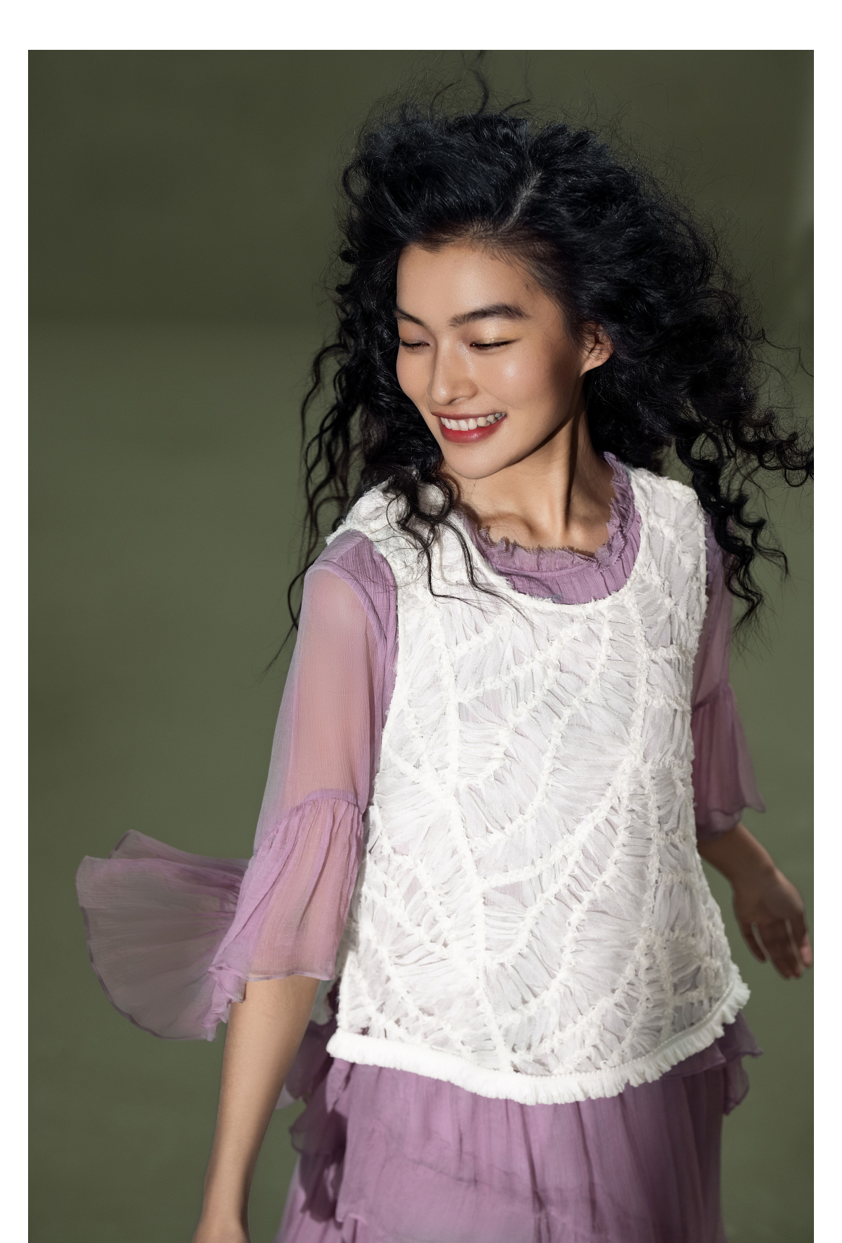【林栖设计小店】手工摇花|瓷白刺绣蕾丝优雅百搭2026夏新款宽松吊带背心1962047