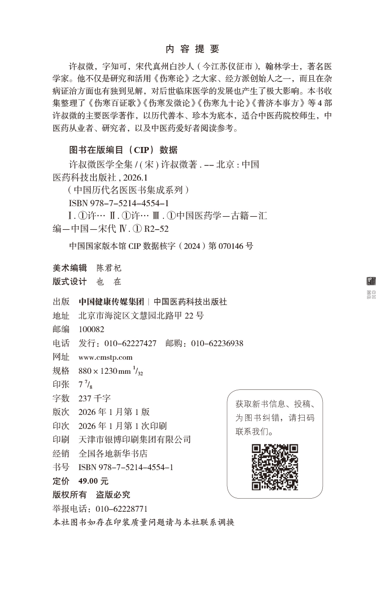 书名:许叔微医学全集(中国历代名医医书集成系列)