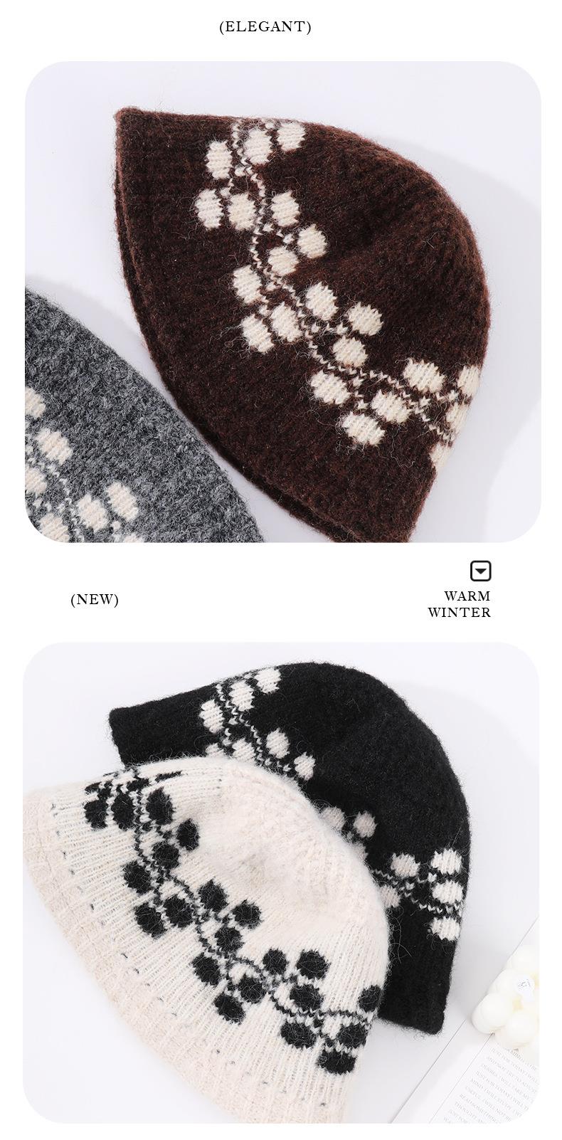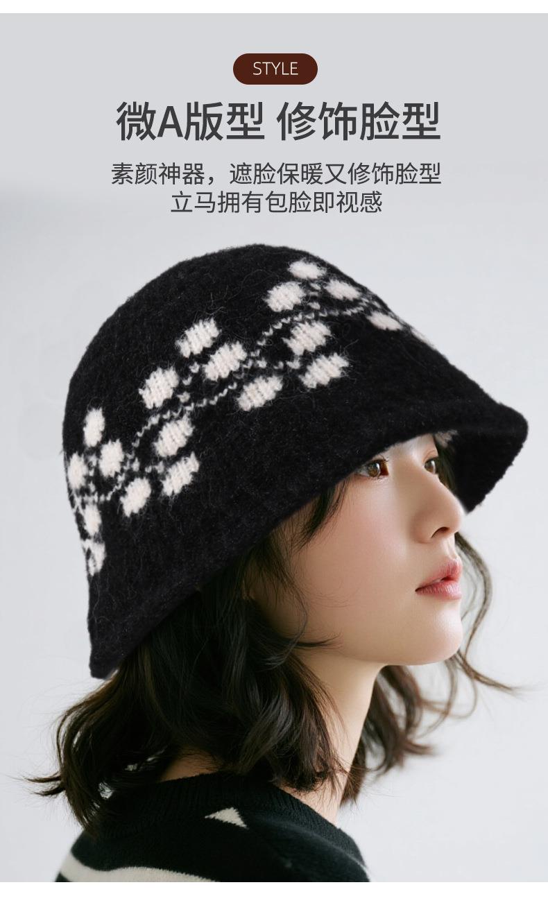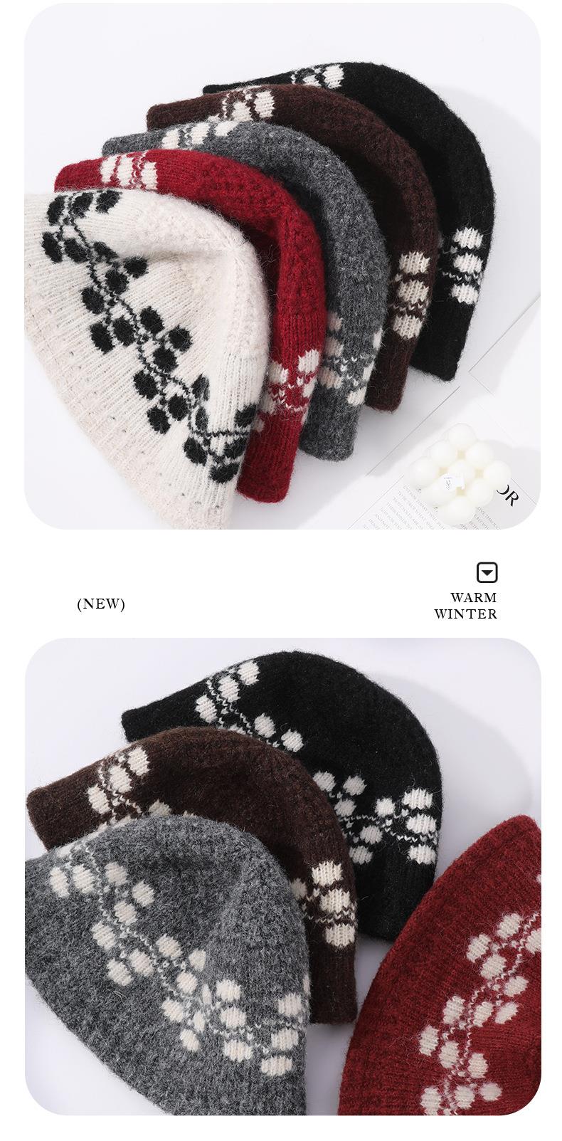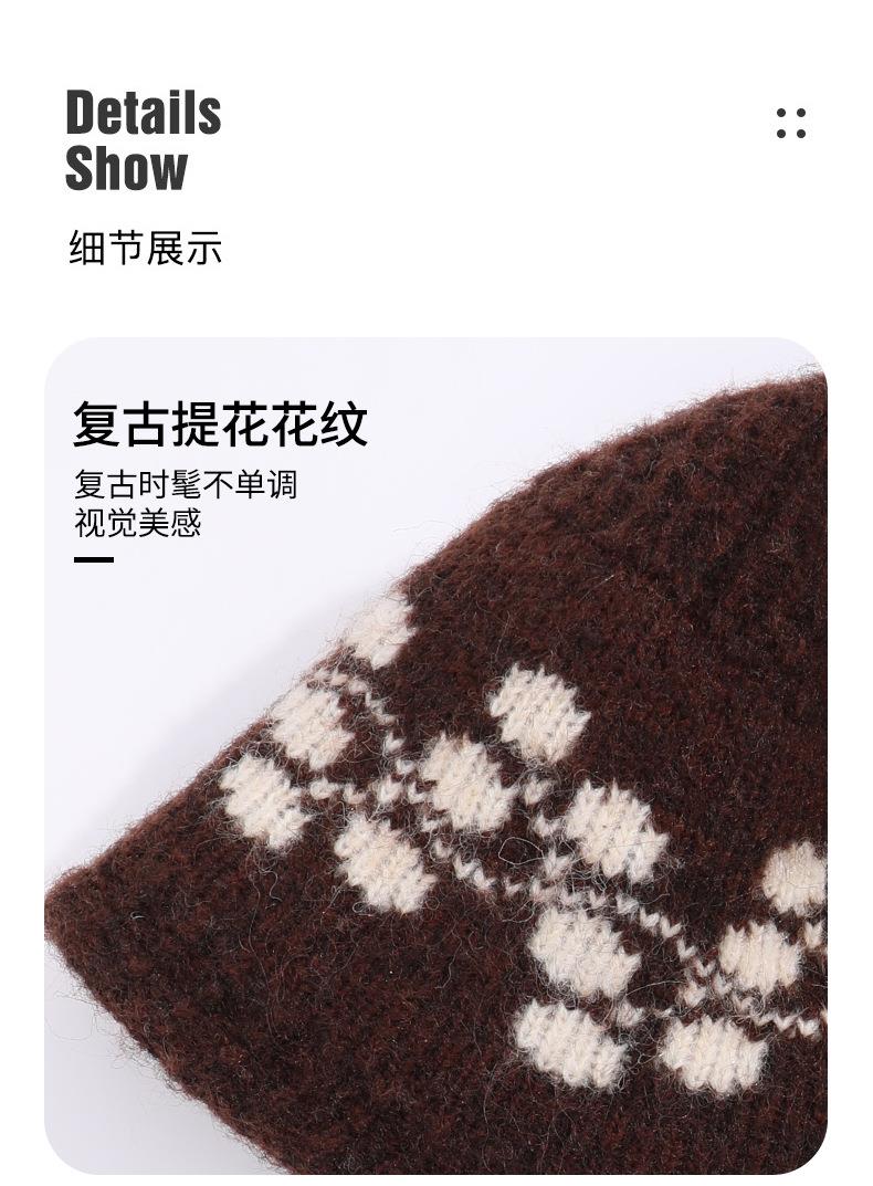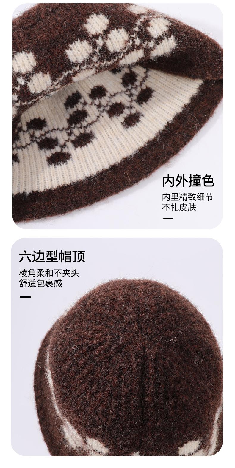 新款冬季户外帽子男复古提花渔夫针织帽女混纺羊毛防寒保暖帽子女
