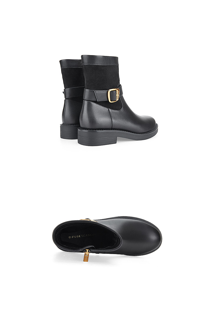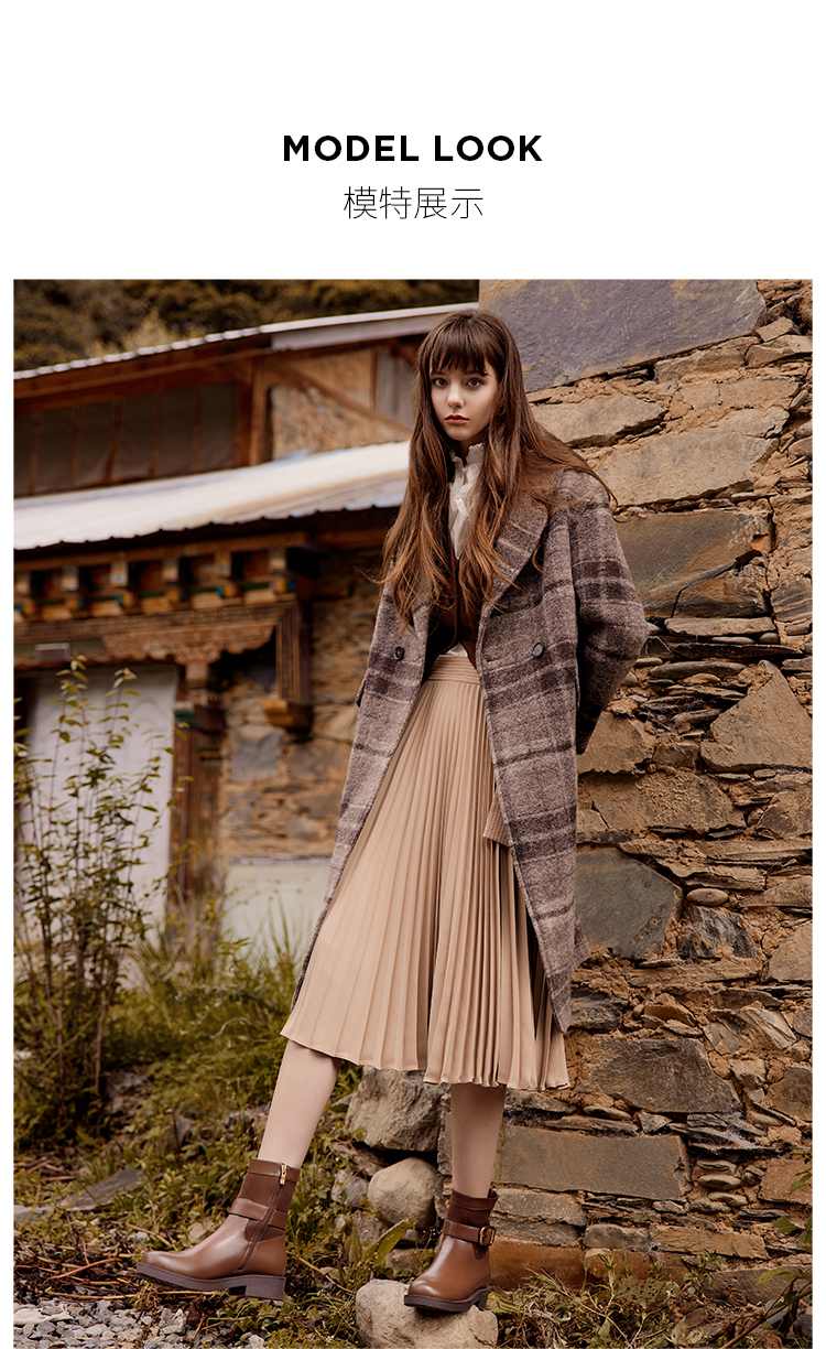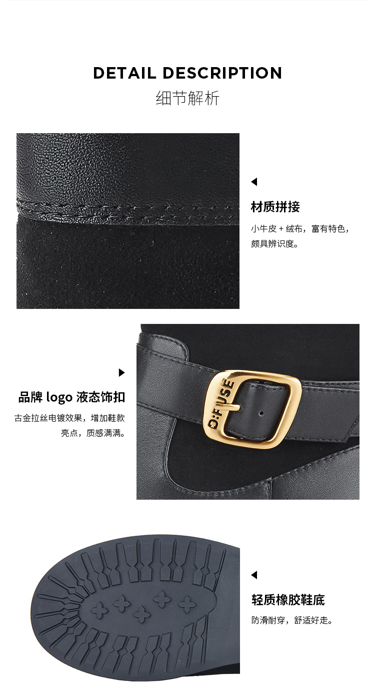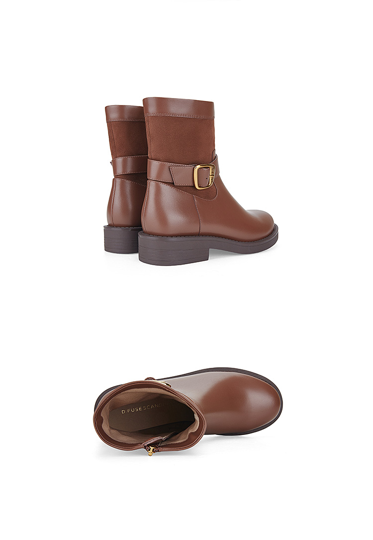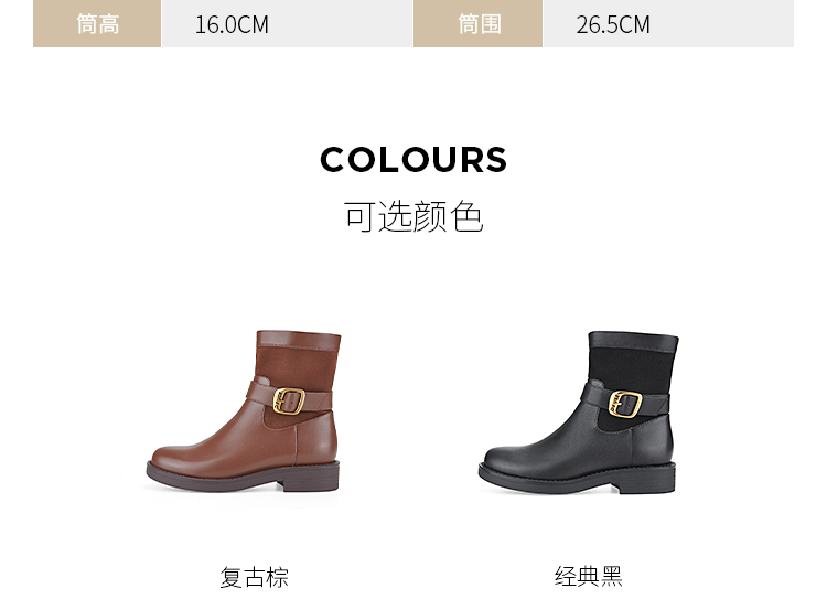 Dfuse迪芙斯冬季新款牛皮圆头复古方扣休闲短靴女DF34116156/DF34118156