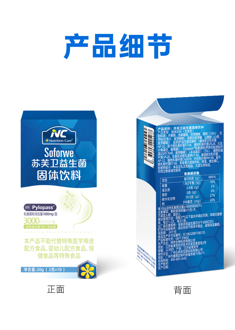NC苏芙卫益生菌六大高活性后生元助力守护2g*10条/盒