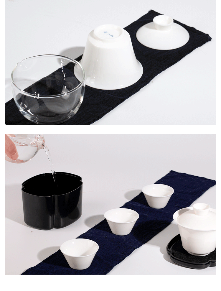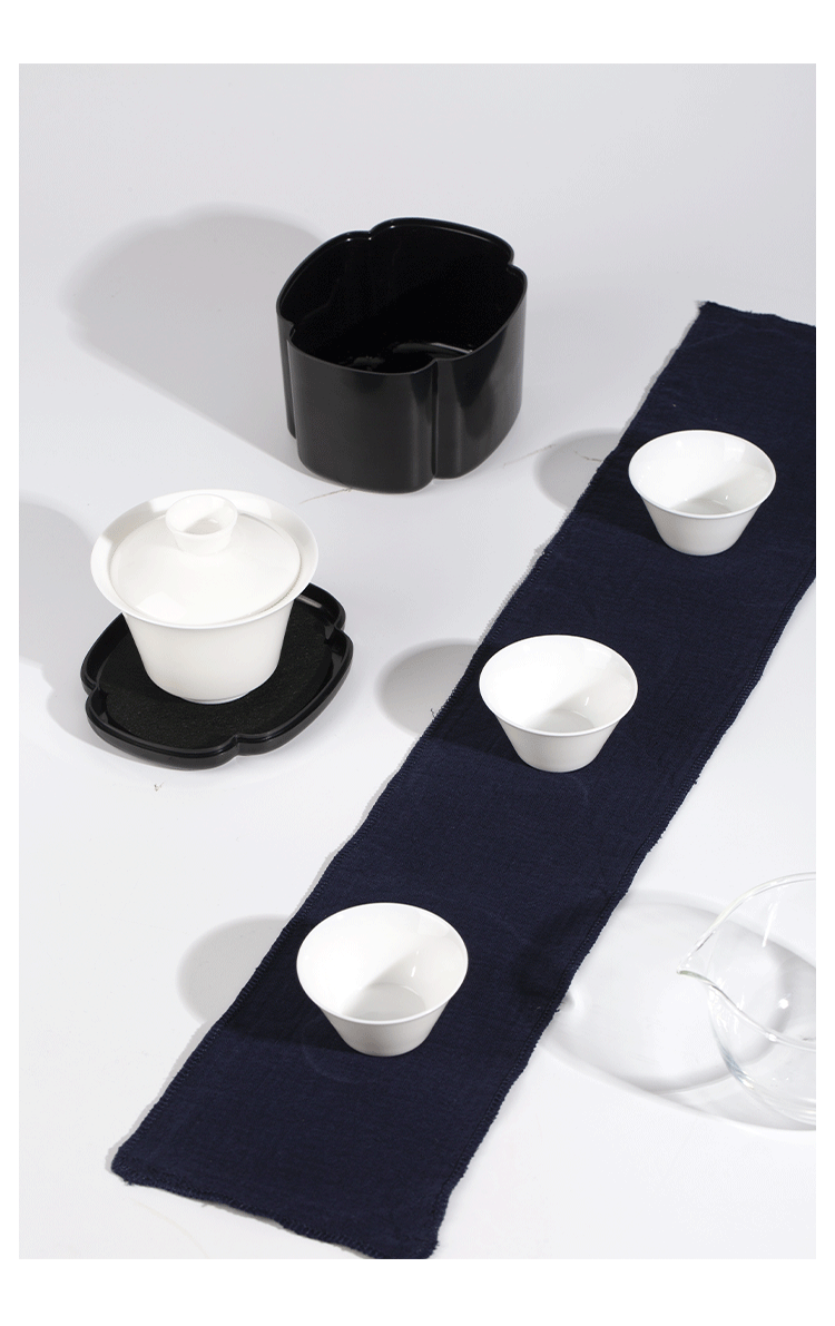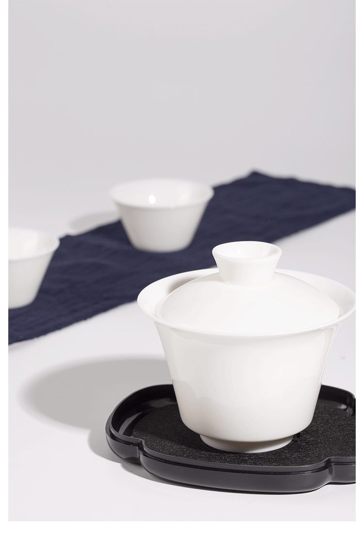 御上茗定制牙白盖碗+玻璃定制茶盅