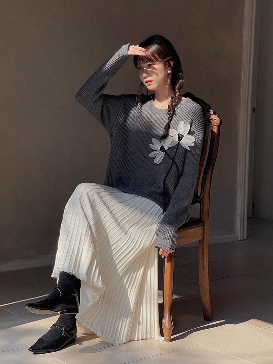 LR【雪顶流苏裙】针织百褶流苏半身裙