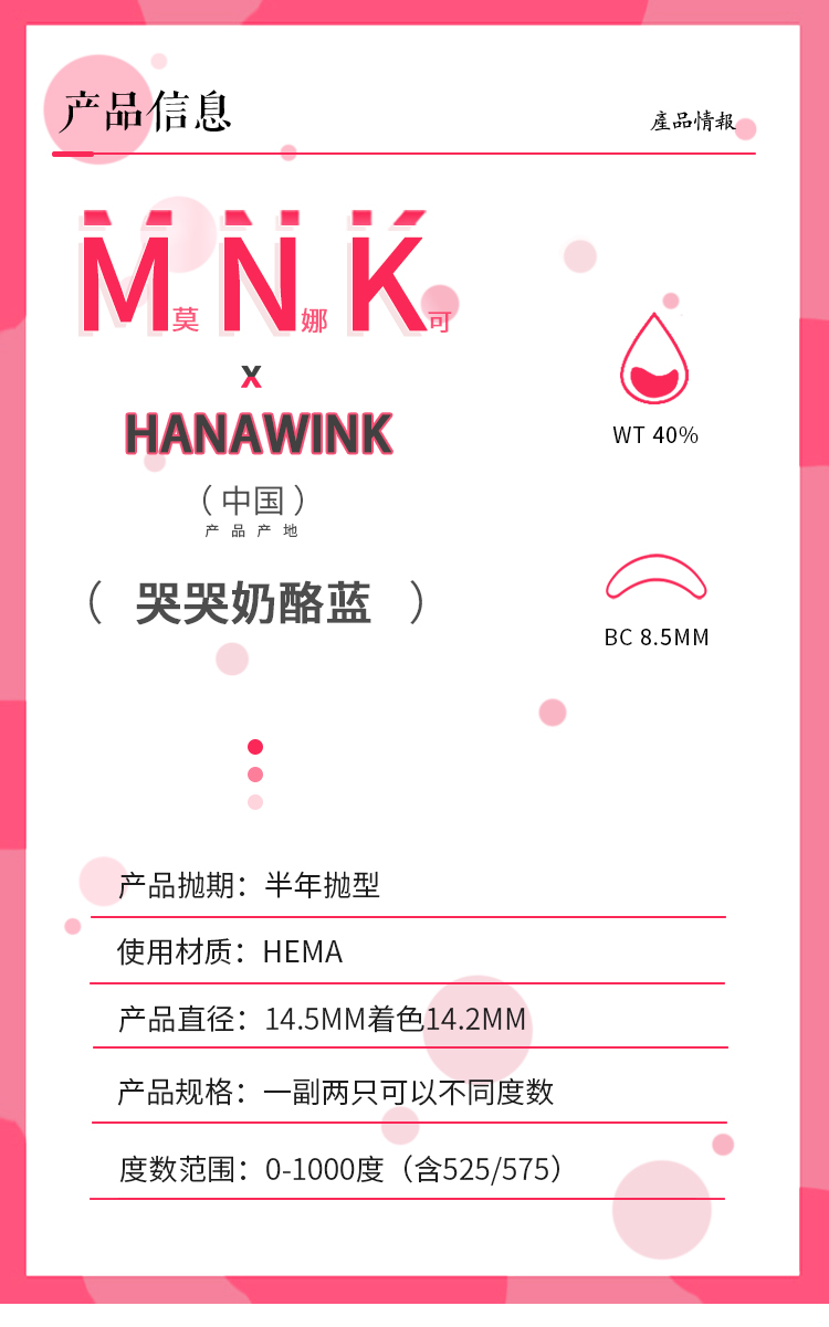 Hanawink 半年抛美瞳 哭哭奶酪蓝 直径14.5mm着色14.2mm 商品图10