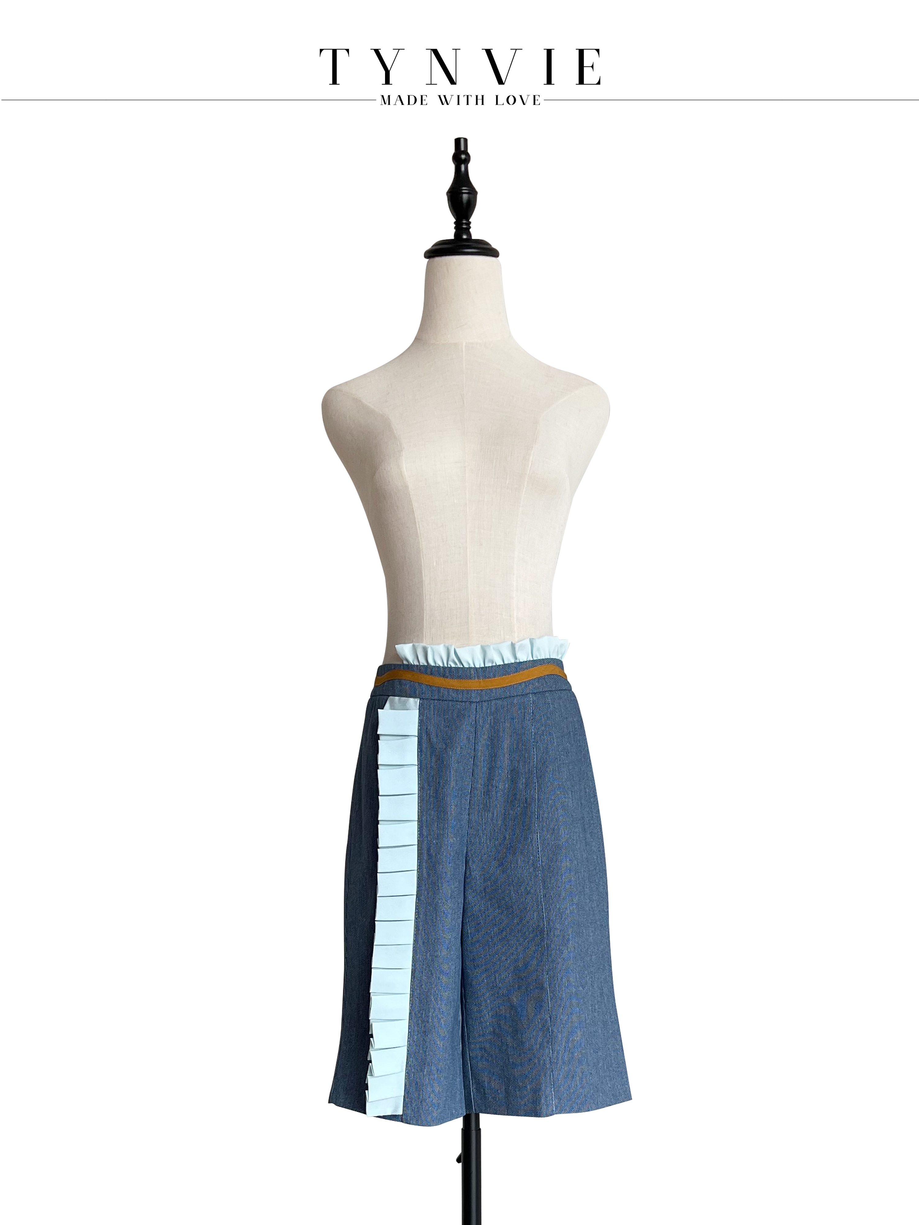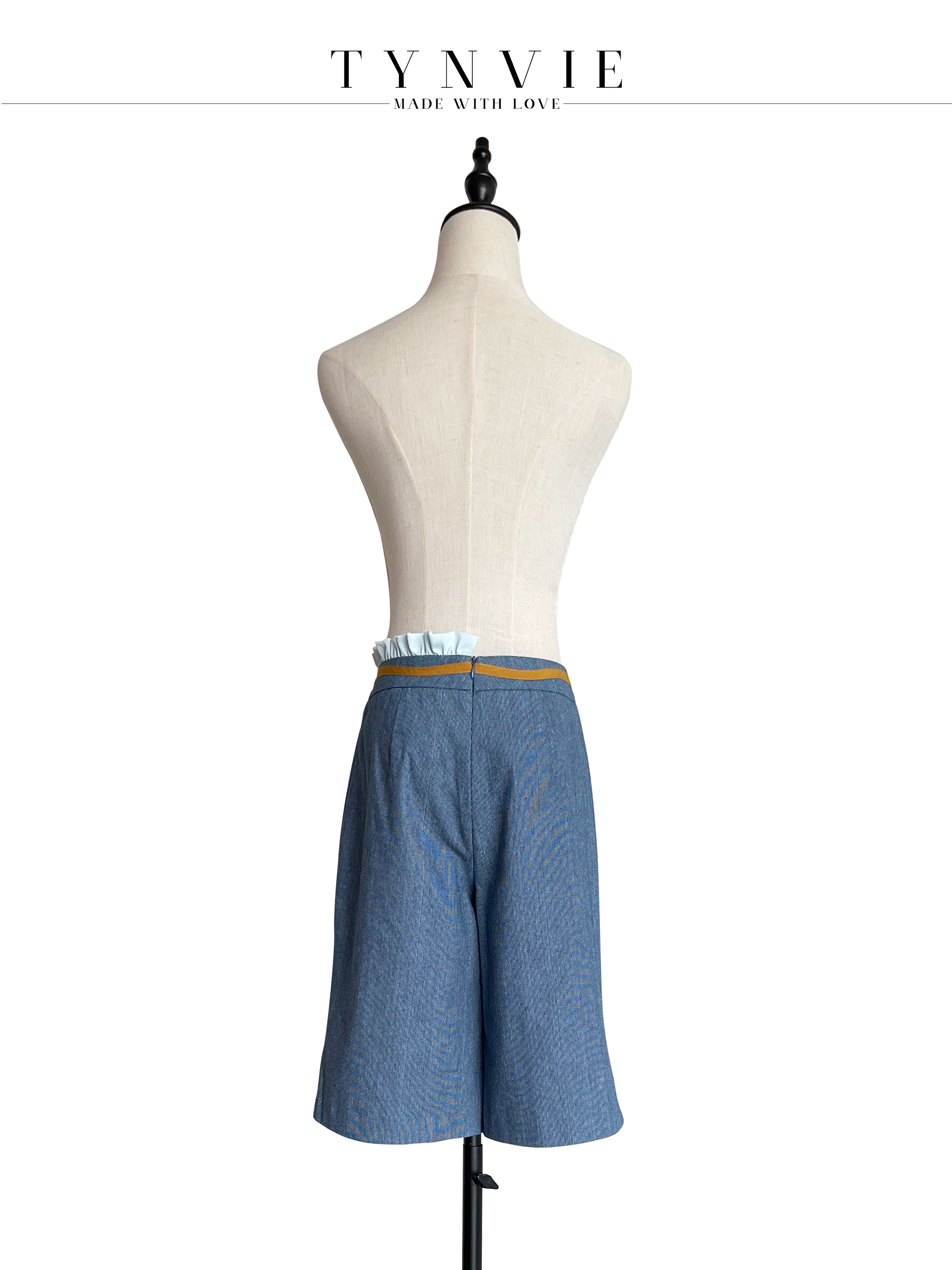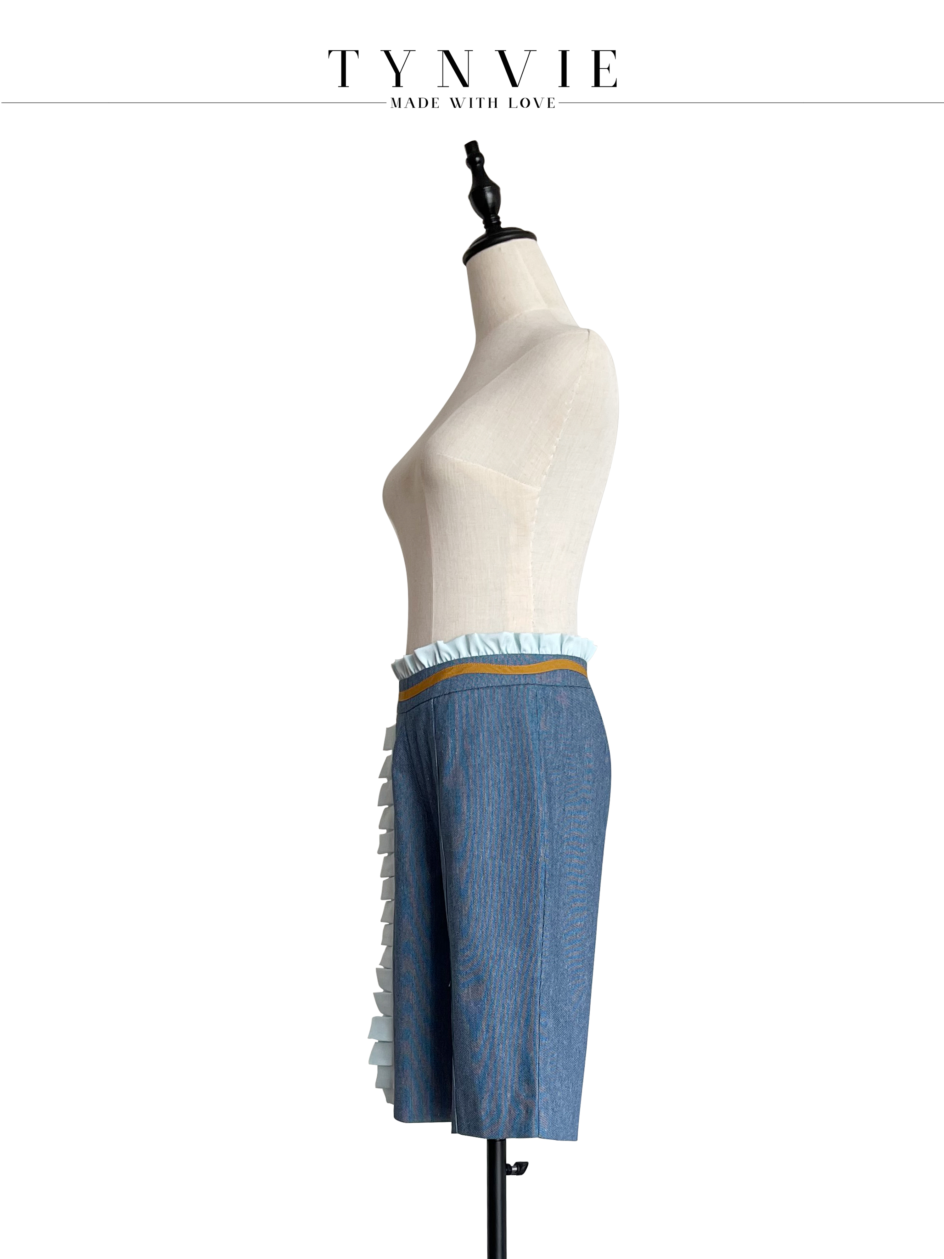 TYNVIE 排褶花边装饰中裤- 牛仔蓝