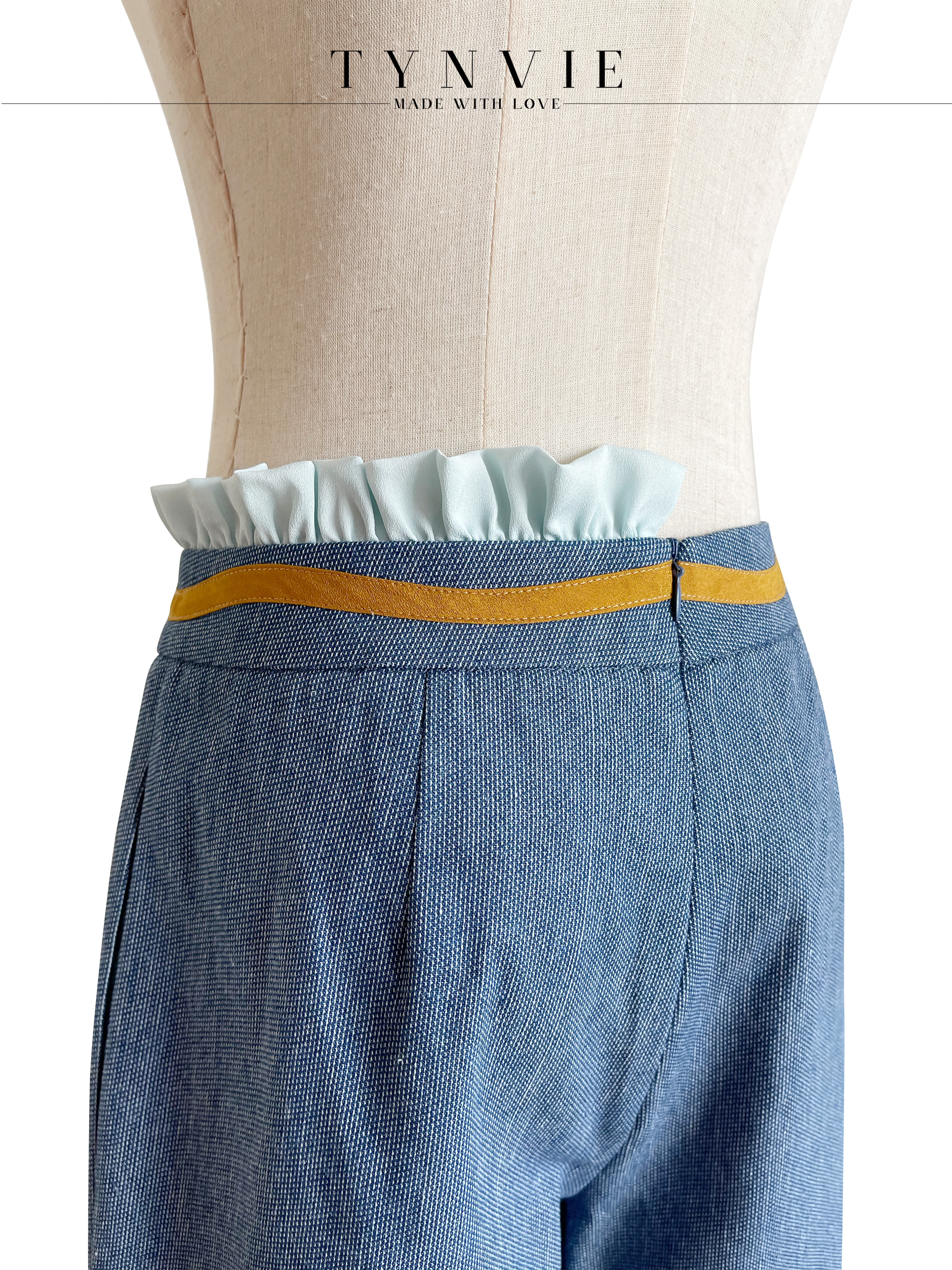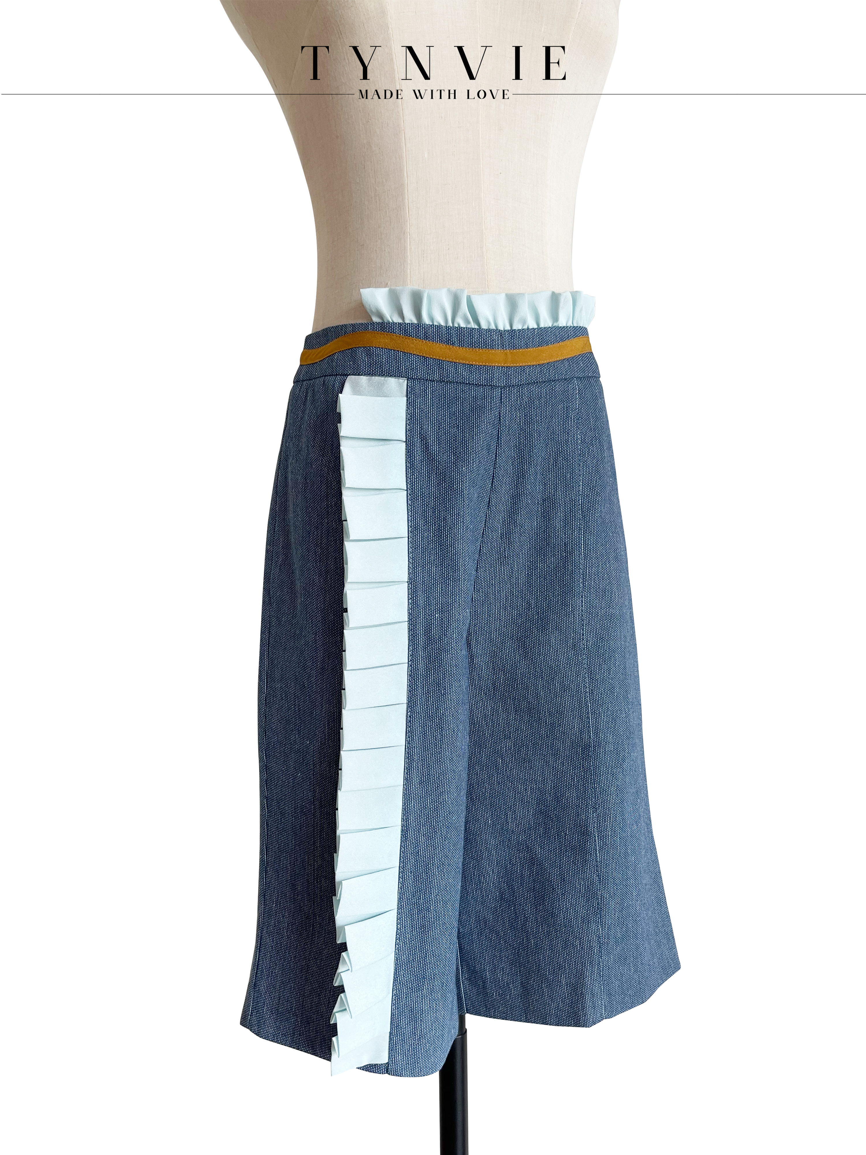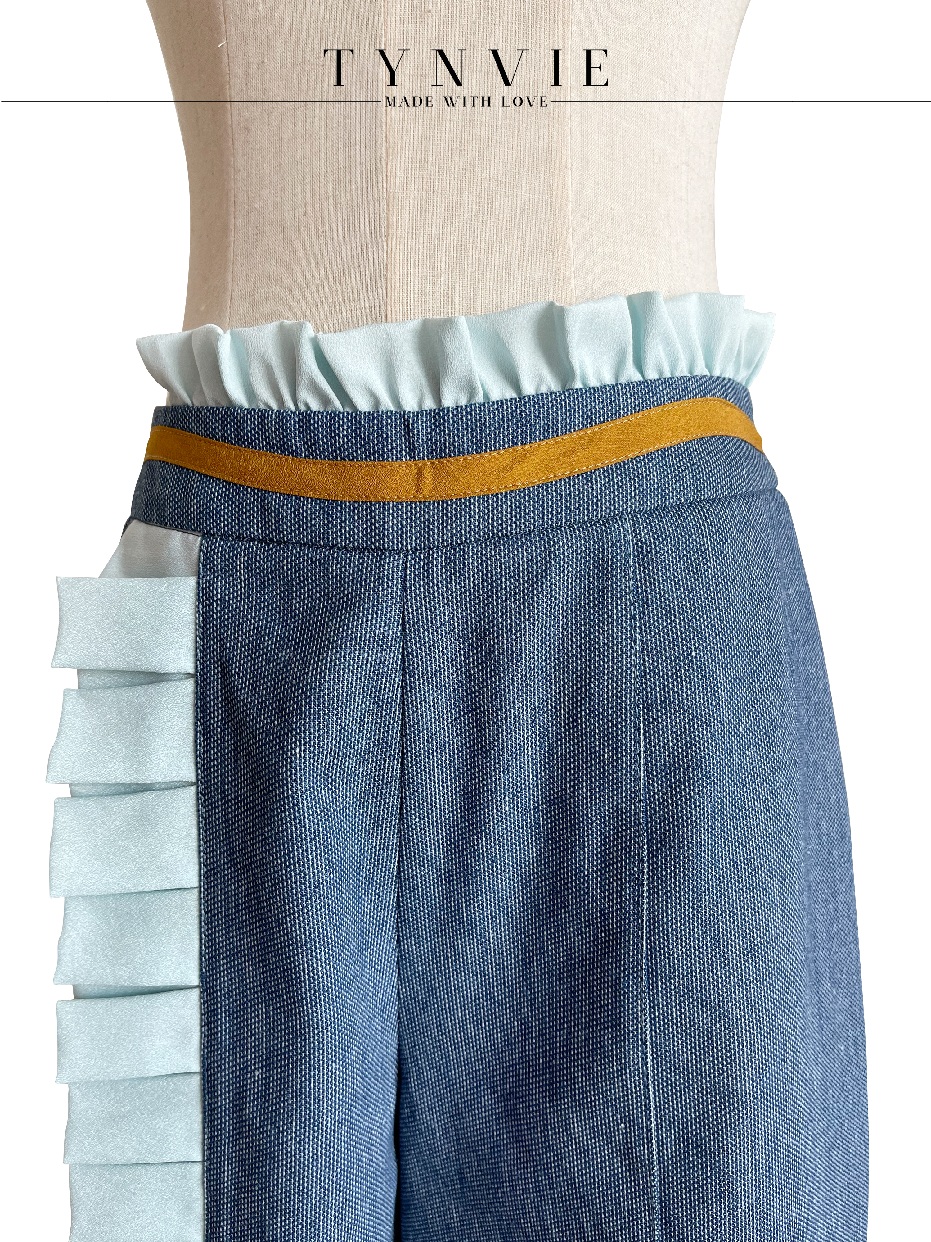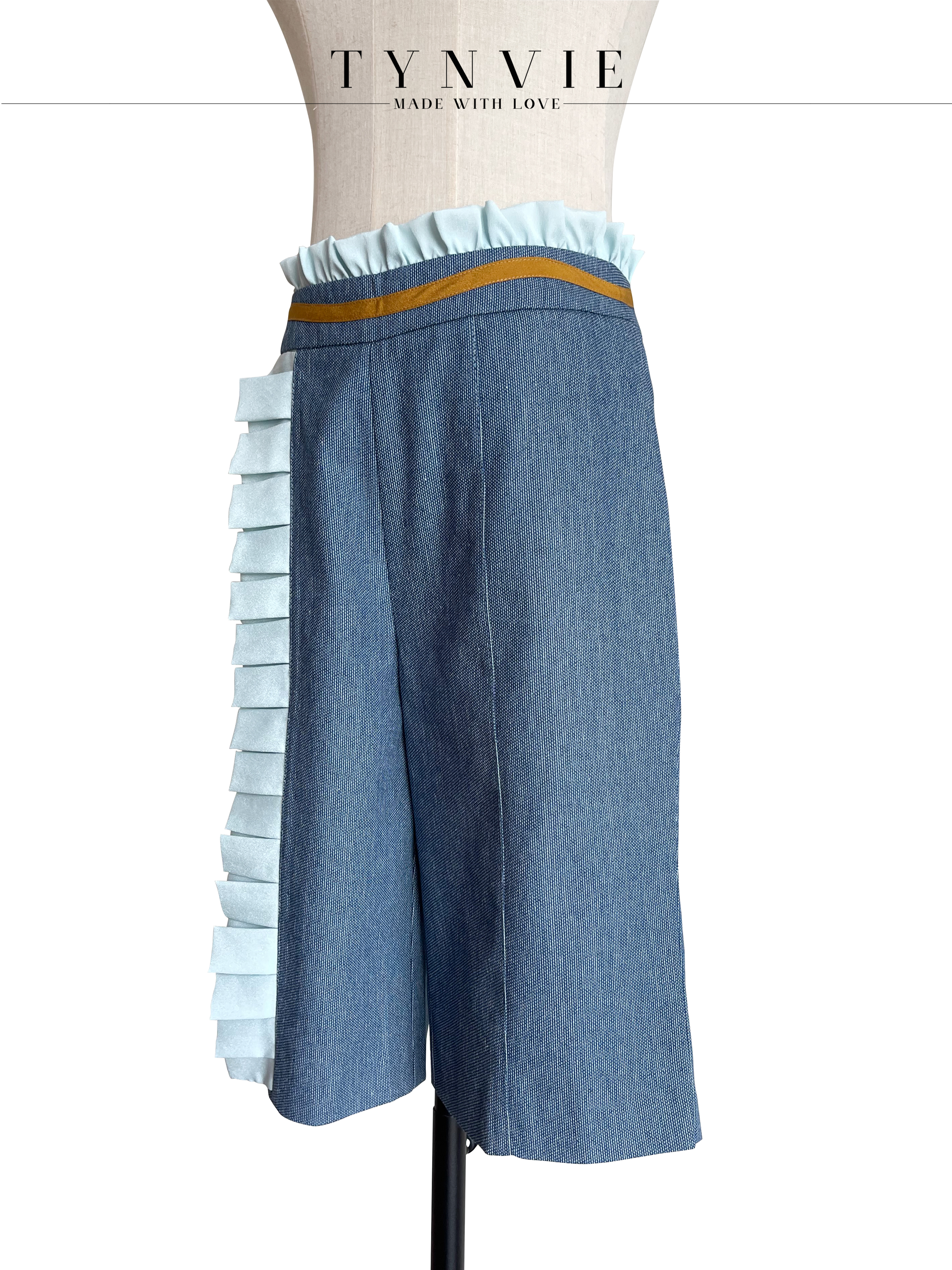TYNVIE 排褶花边装饰中裤- 牛仔蓝
