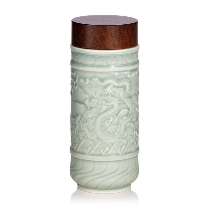 商务送礼 乾唐轩活瓷 九龙壁平安龙木纹盖随身杯双层350ml 霸气龙纹