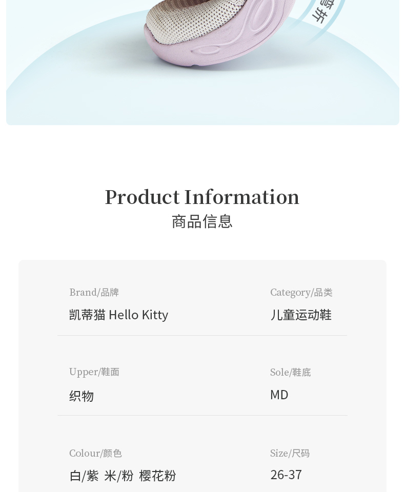 HelloKitty童鞋女童运动鞋春夏女孩透气跑鞋轻便休闲鞋26-37 K4526803