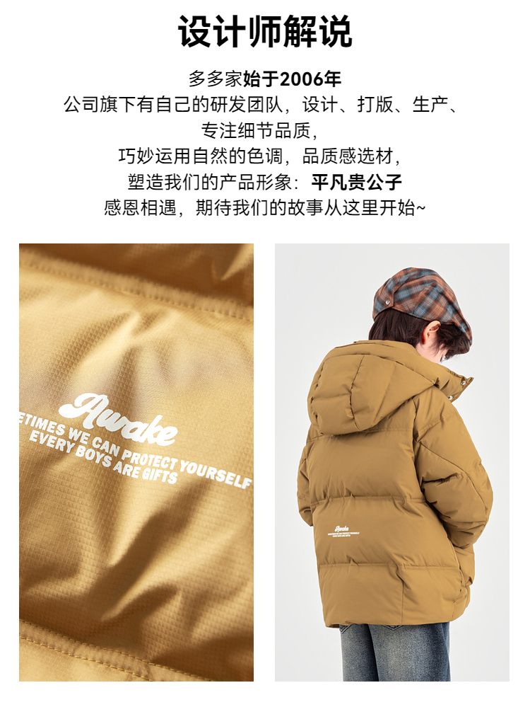 【件件底价,童装双倍积分】多多家男童三防羽绒服2025新款秋冬款儿童中大童面包服外套冬装厚10879