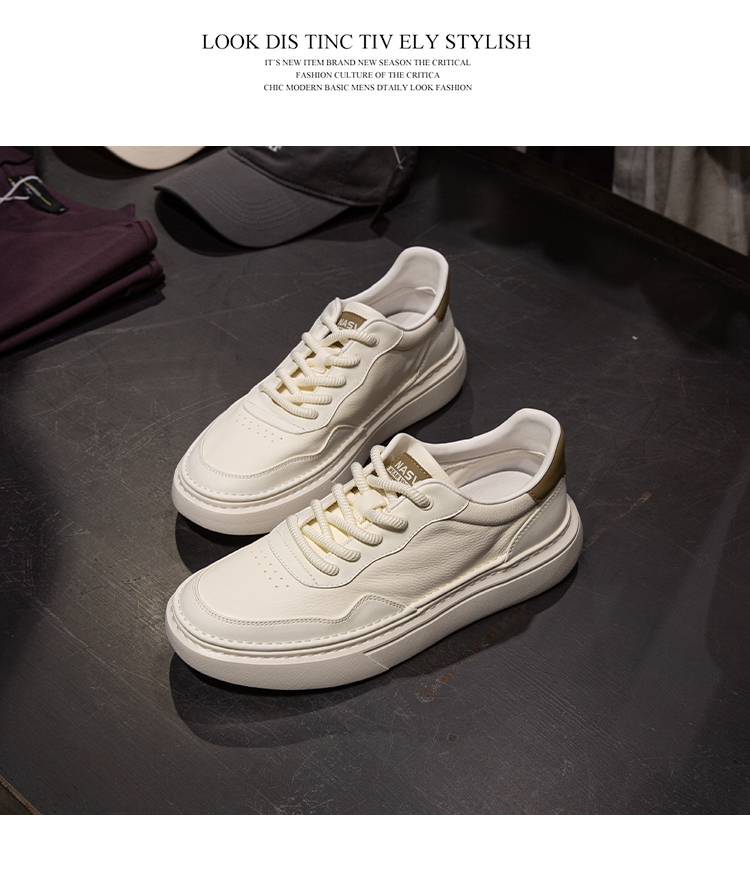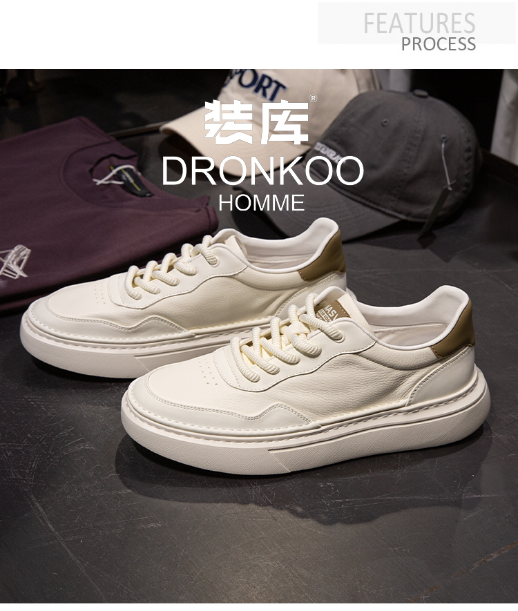 DRONKOO 2025 系带鞋后侧撞色皮料基础款低帮板鞋