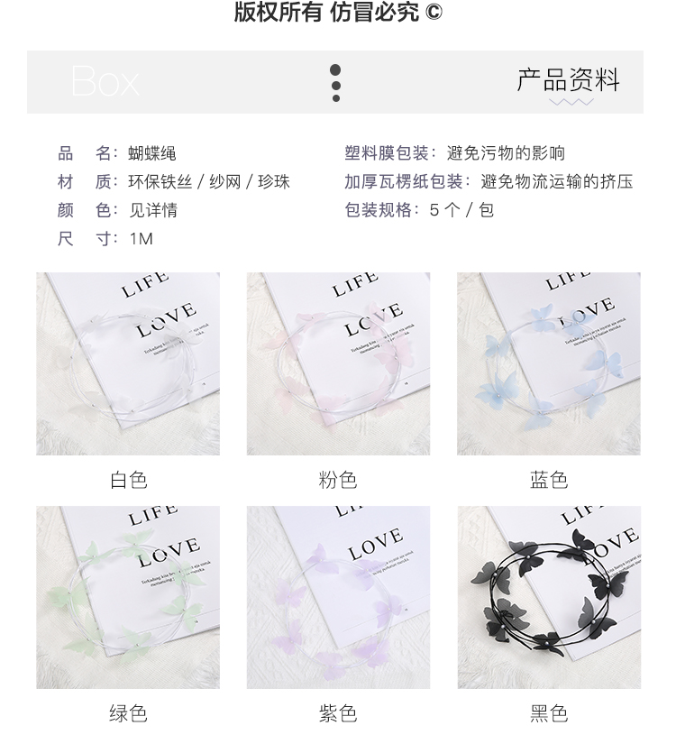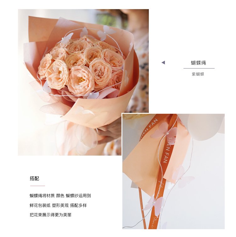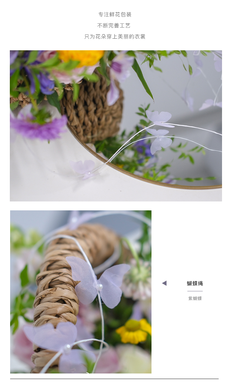 七夕新品*纯手工蝴蝶绳珍珠花束配件 5条/包