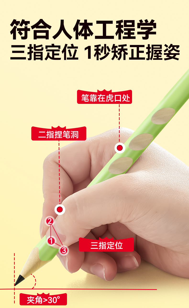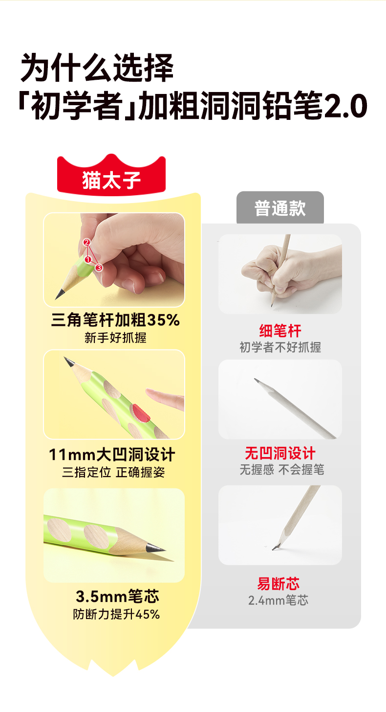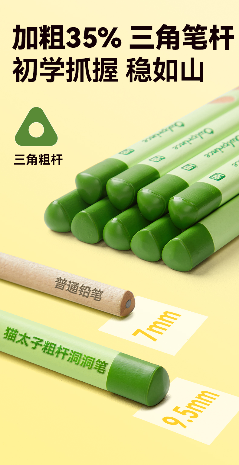 限时21.9元三盒30支/猫太子小绿杆加大号洞洞铅笔幼儿园小学生专用儿童矫正握姿加粗杆洞洞笔大三角无毒初学者【2月开学文具合集】