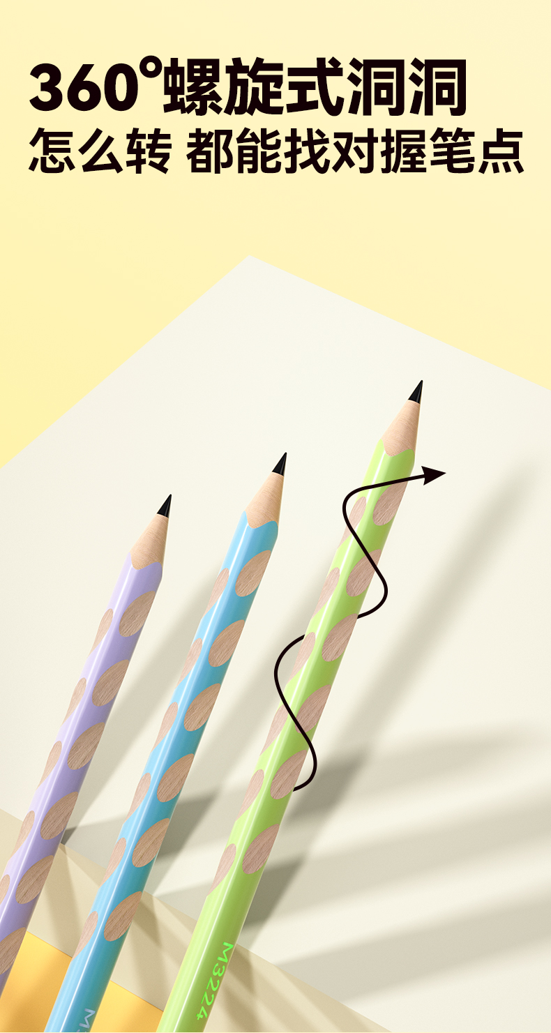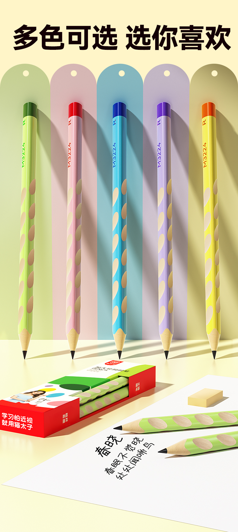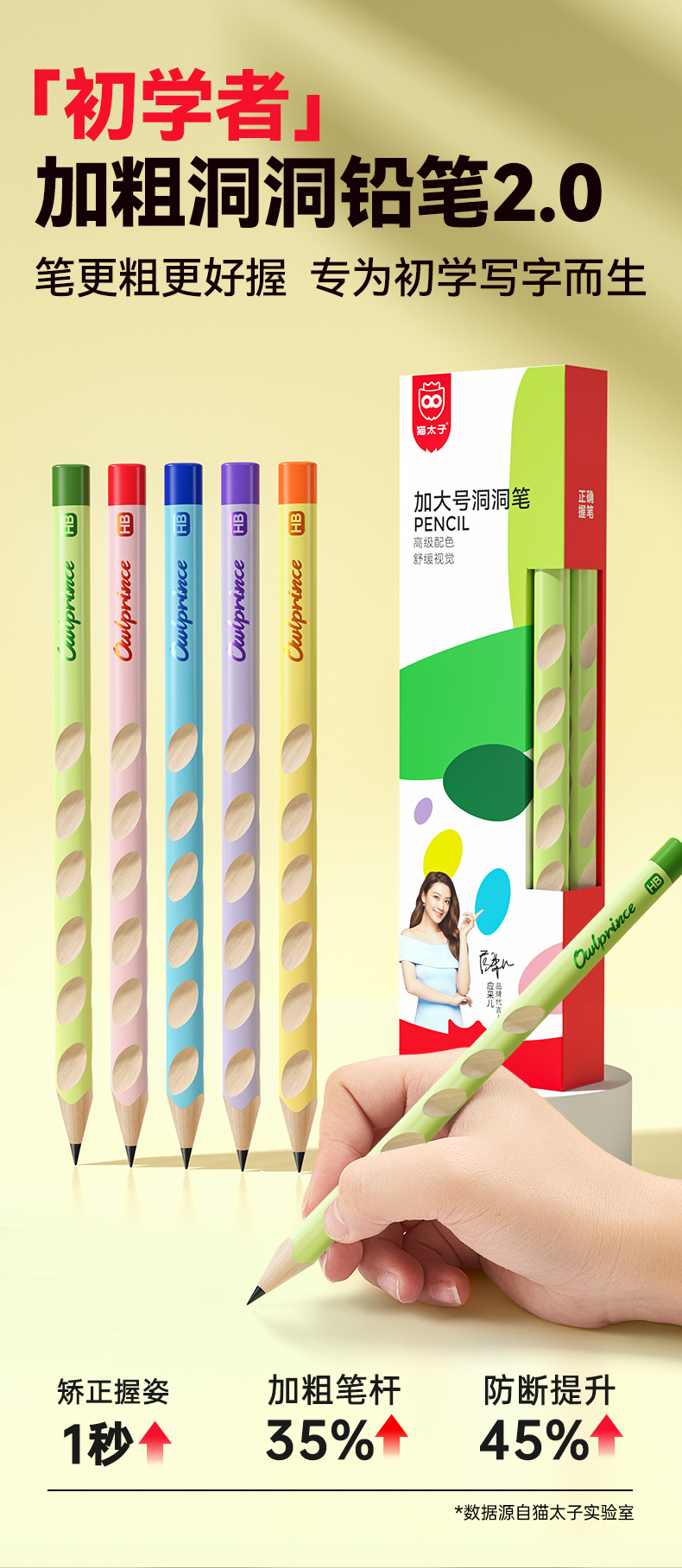 限时21.9元三盒30支/猫太子小绿杆加大号洞洞铅笔幼儿园小学生专用儿童矫正握姿加粗杆洞洞笔大三角无毒初学者【2月开学文具合集】