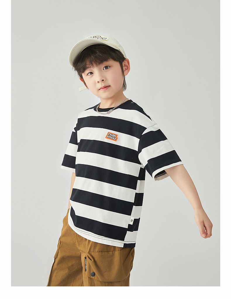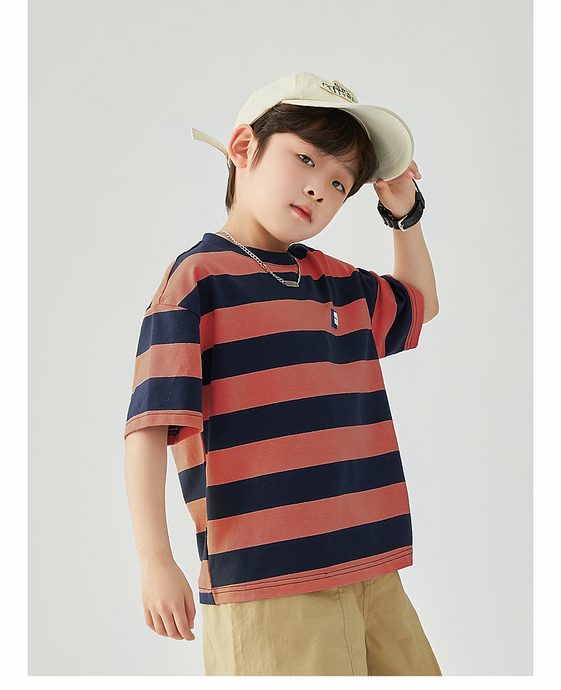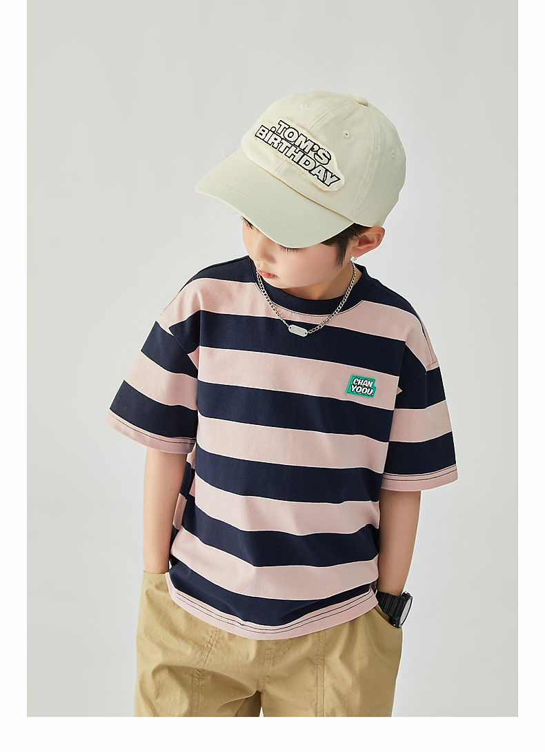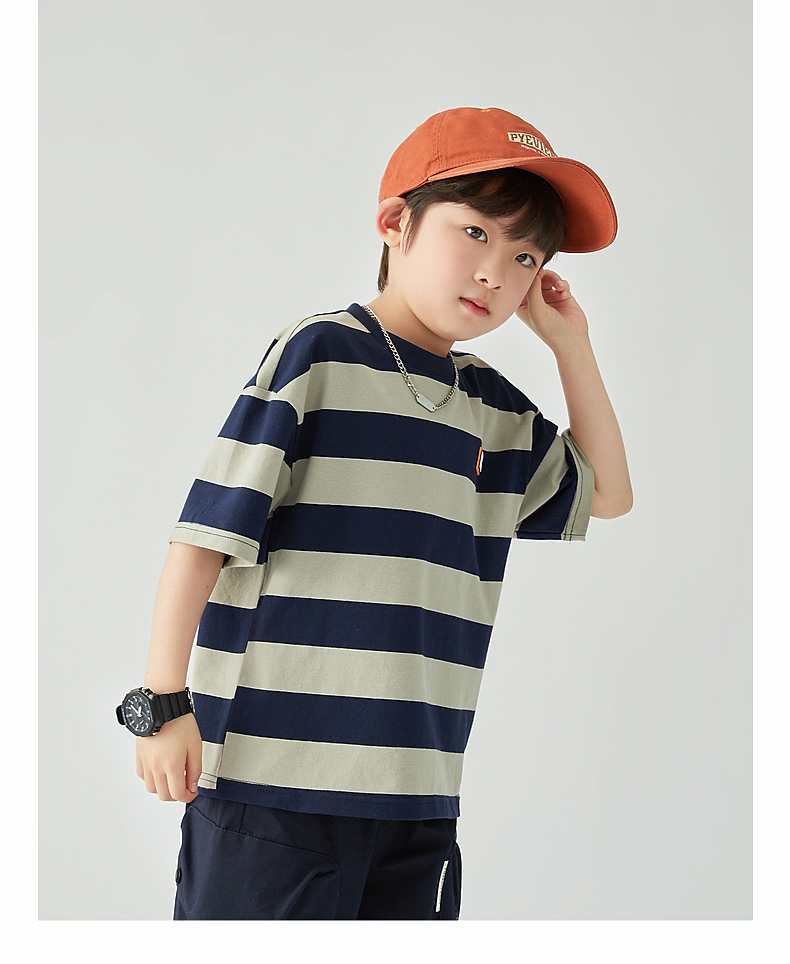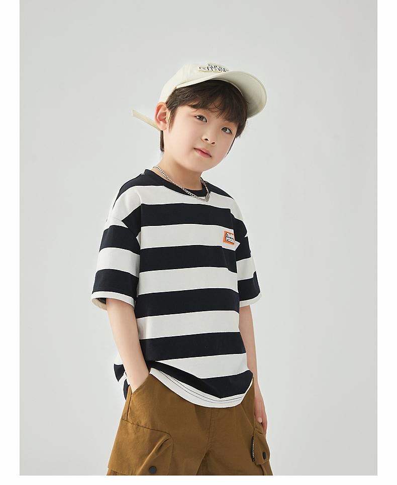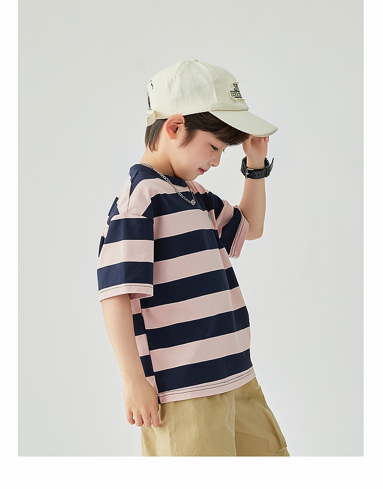 【团购价39.9】多多家 男童T恤2024夏季新款百搭双色条纹短袖儿童中大童薄款9404