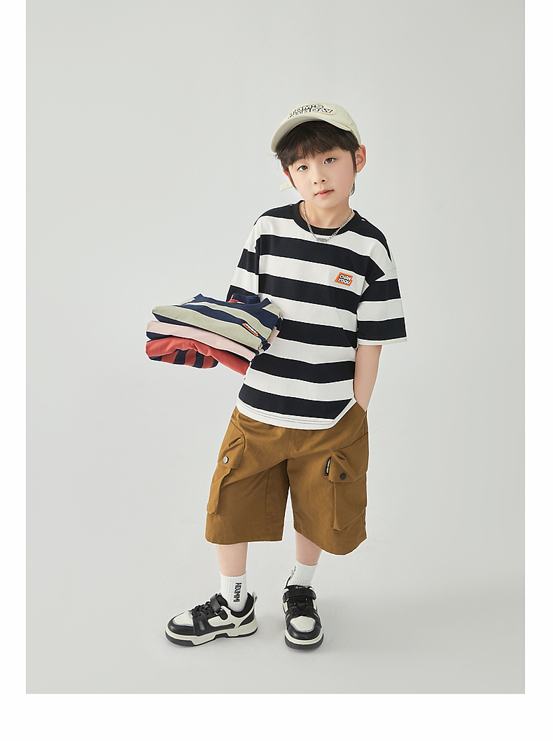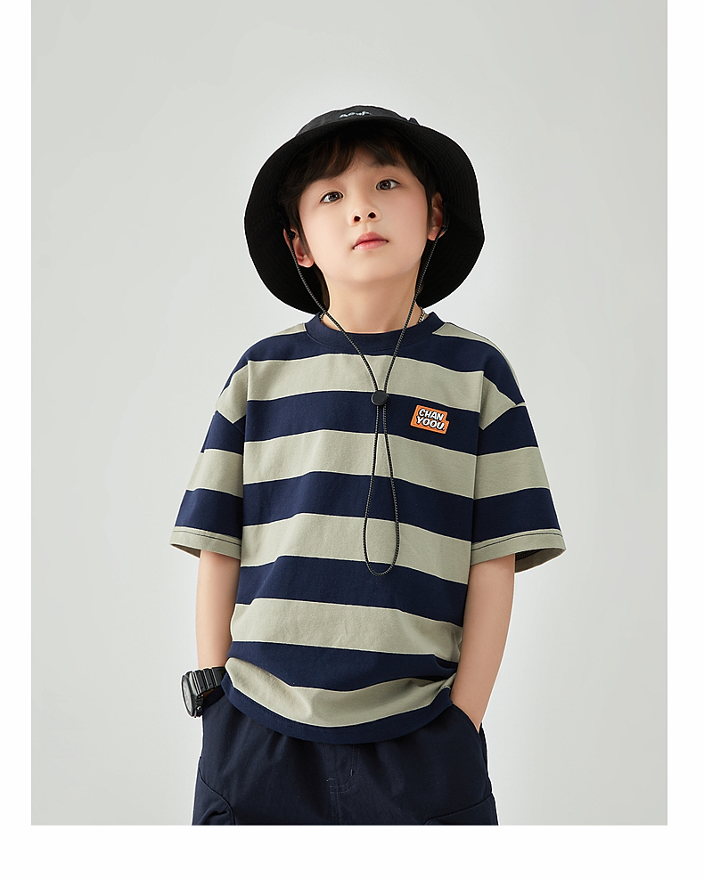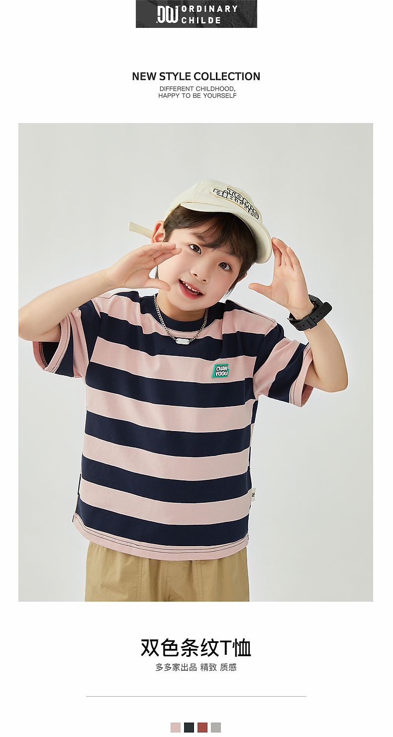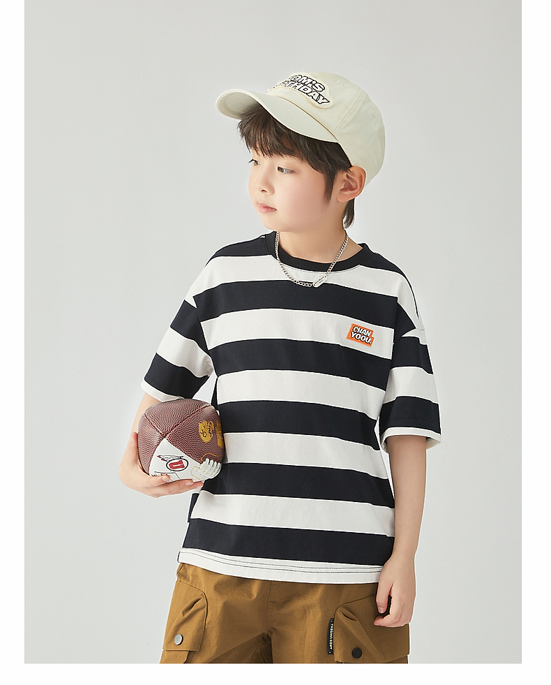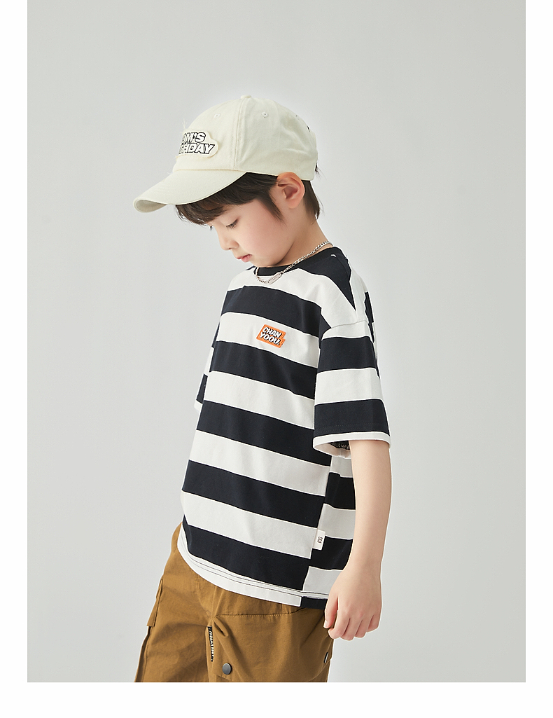 【团购价39.9】多多家 男童T恤2024夏季新款百搭双色条纹短袖儿童中大童薄款9404