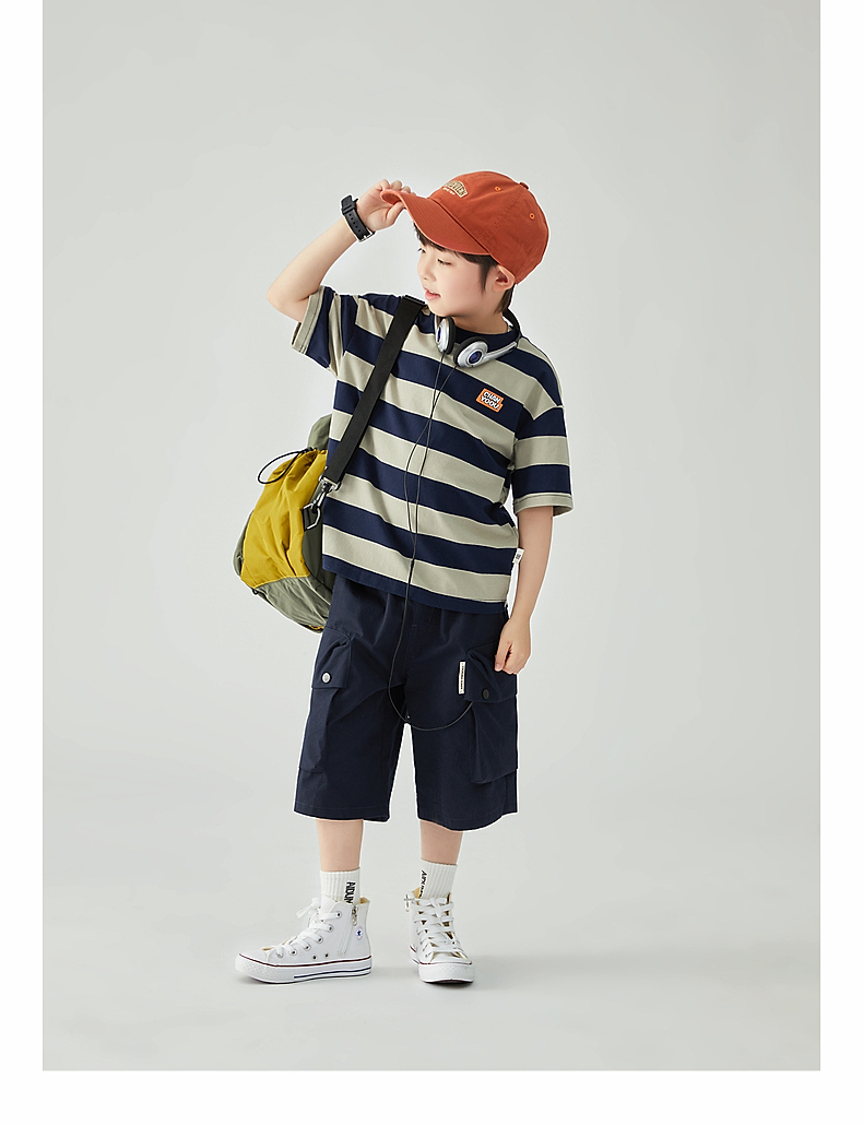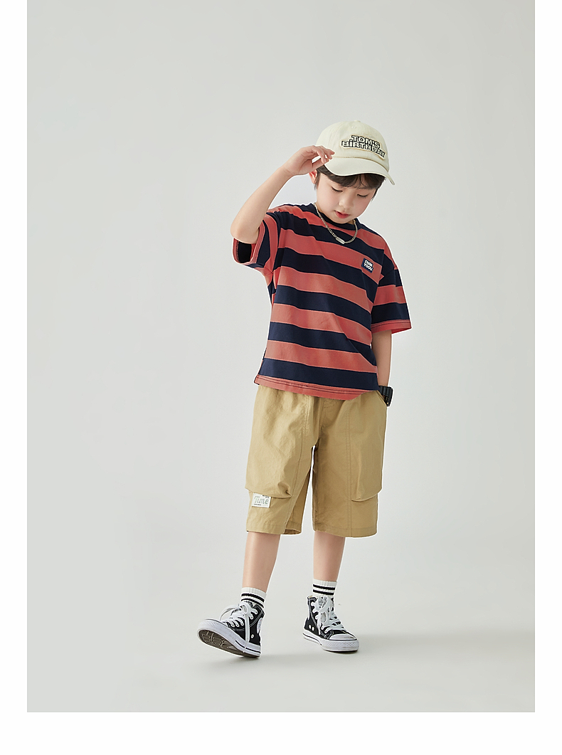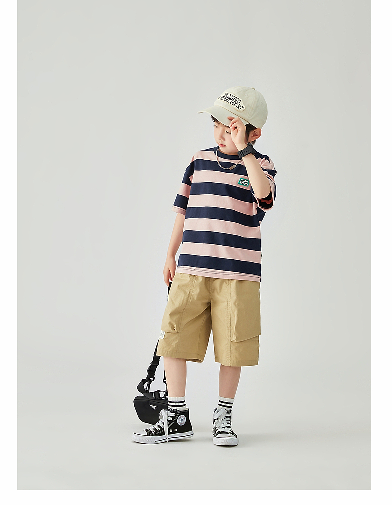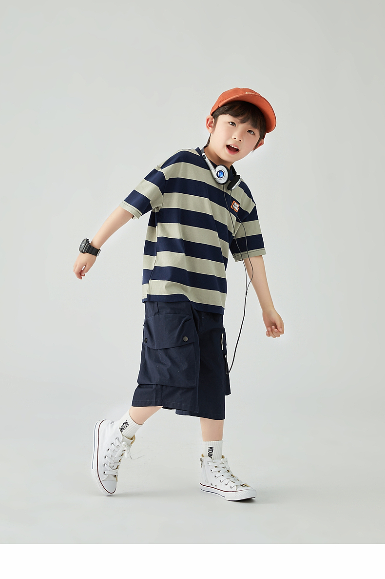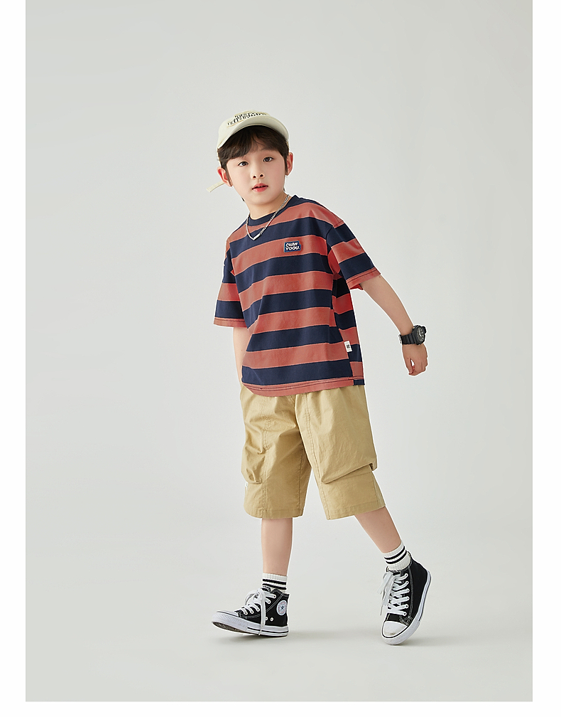 【团购价39.9】多多家 男童T恤2024夏季新款百搭双色条纹短袖儿童中大童薄款9404