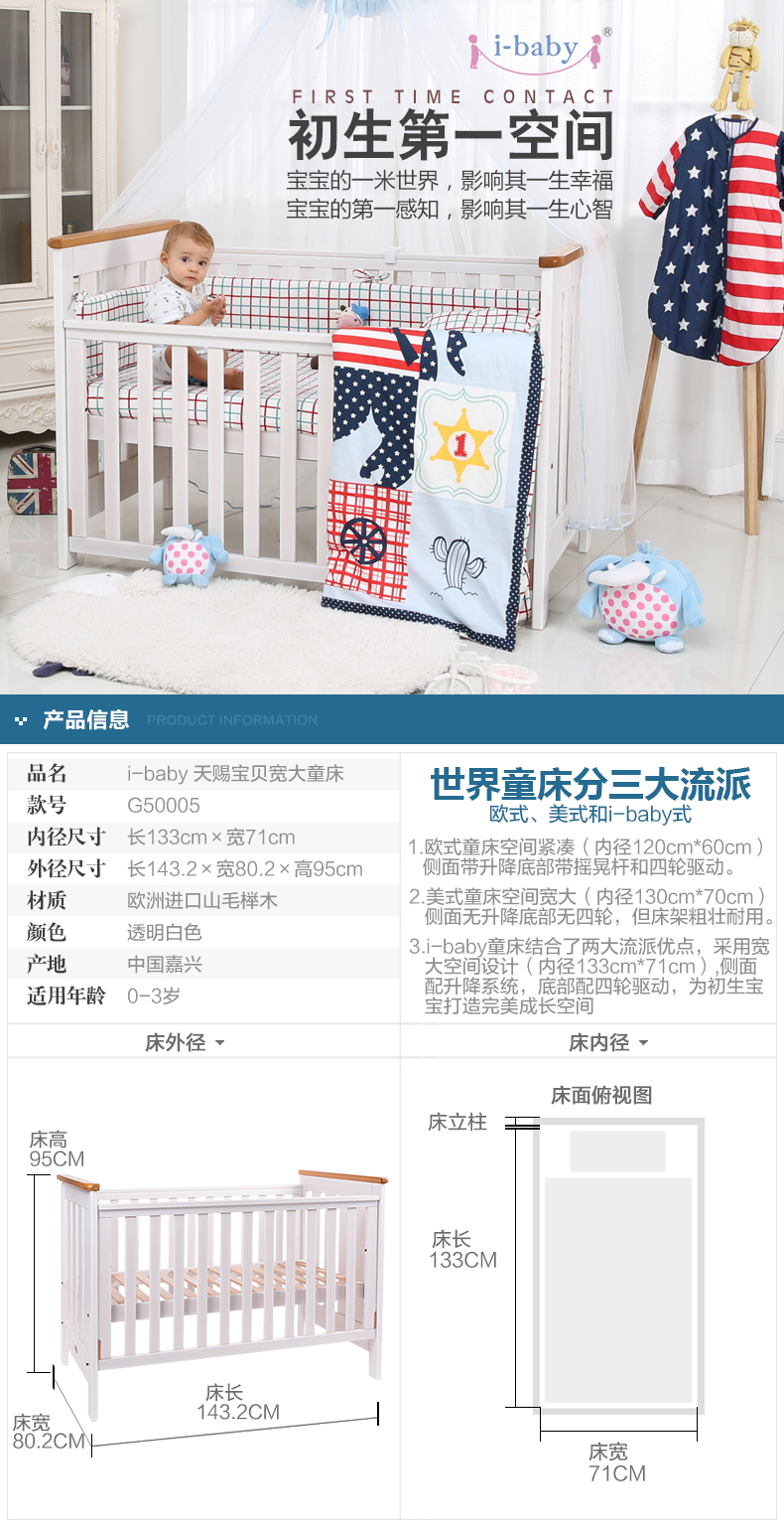 【有问题下架】ibaby×outlast太空科技恒温天赐宝贝宽大童床进口童床婴儿床实木宽大童床欧式多功能婴儿床