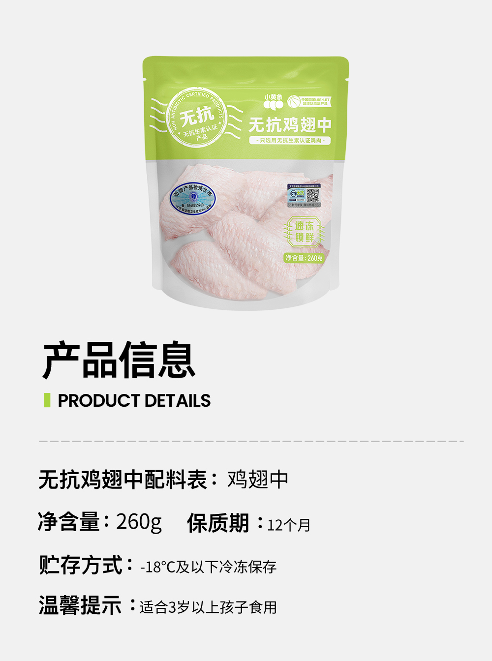无抗鸡翅中*2袋+无抗鸡翅根*2袋
