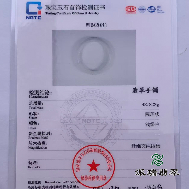 派瑞翡翠 翡翠手镯 糯种 浅绿