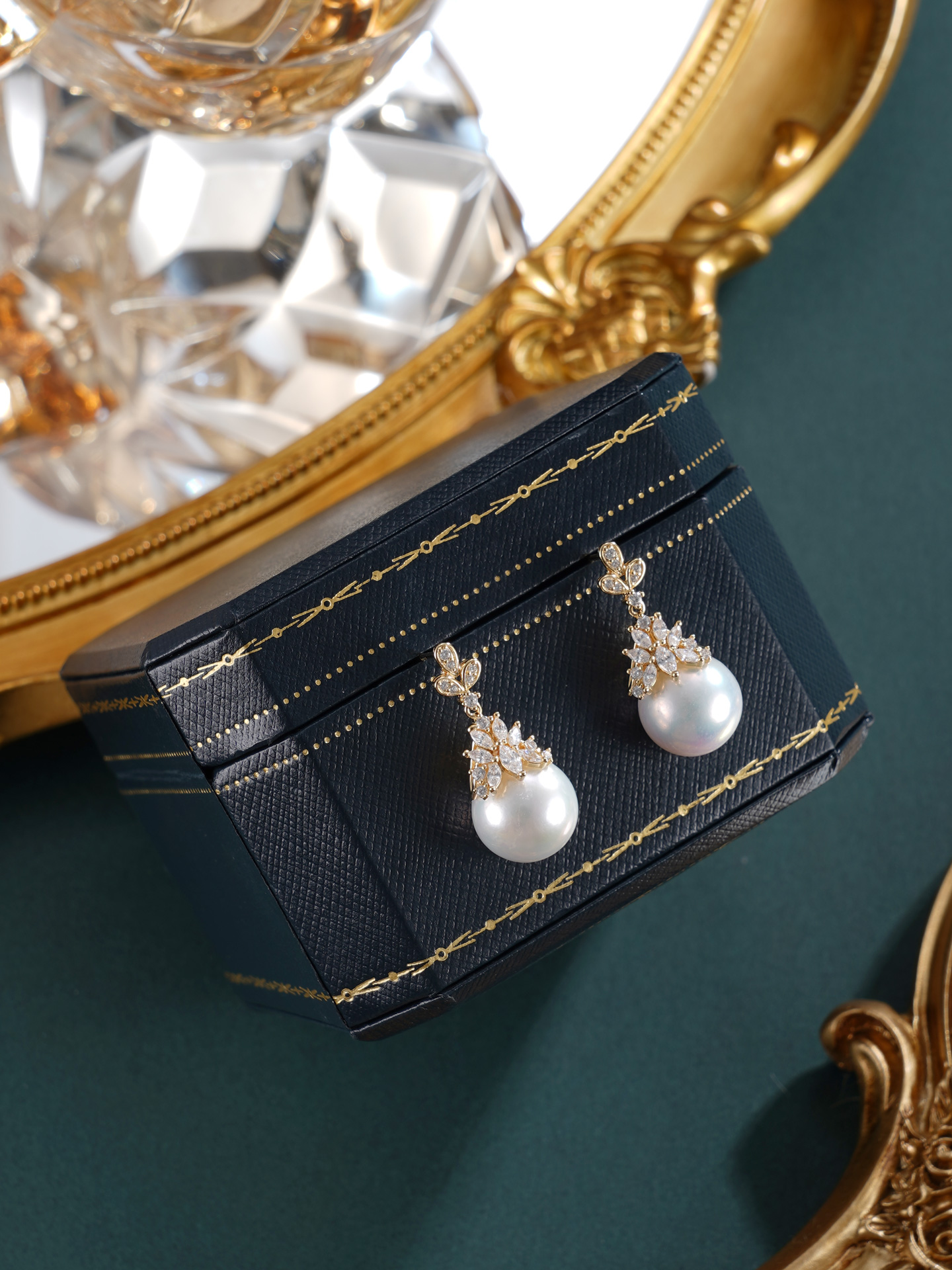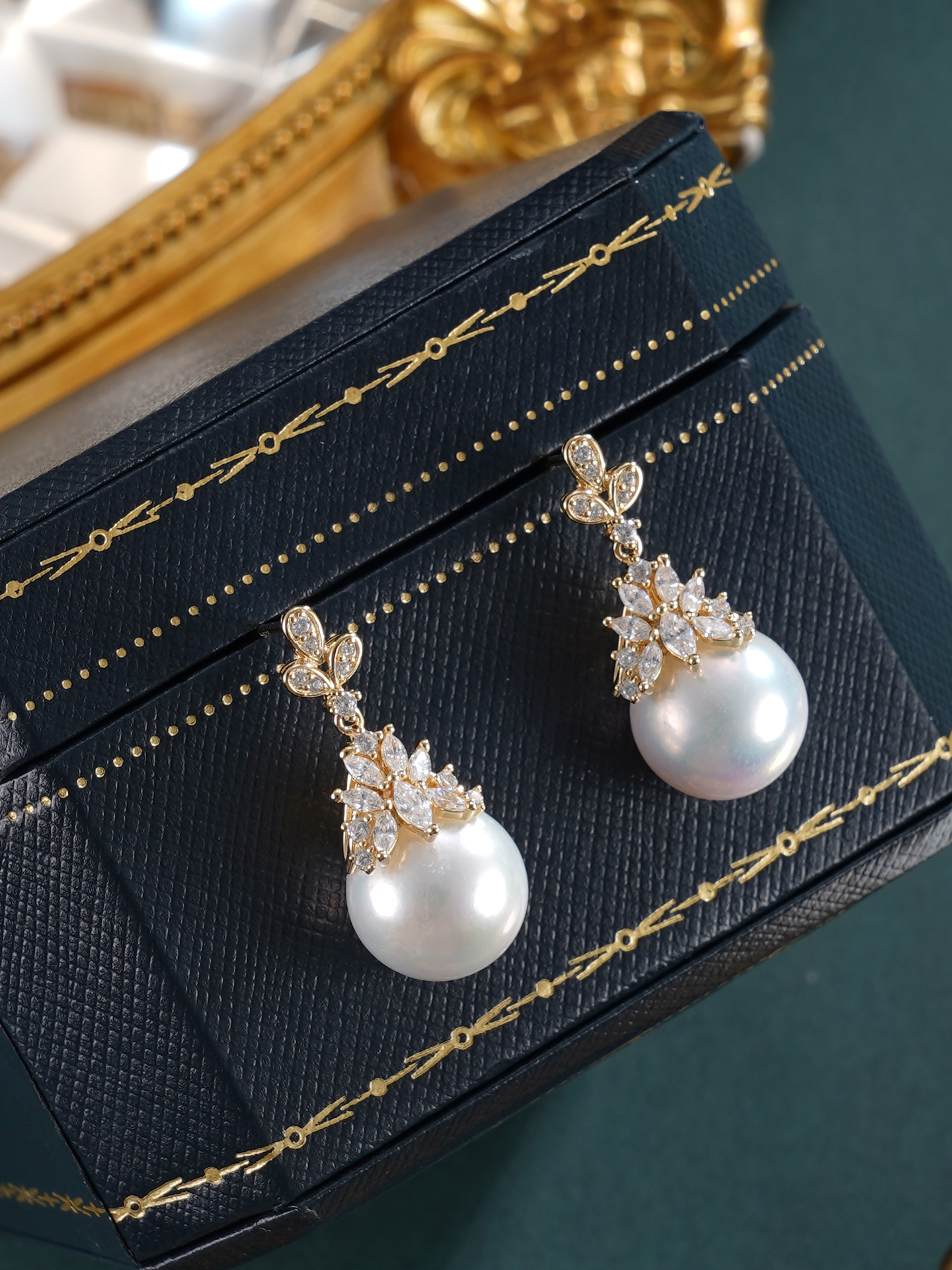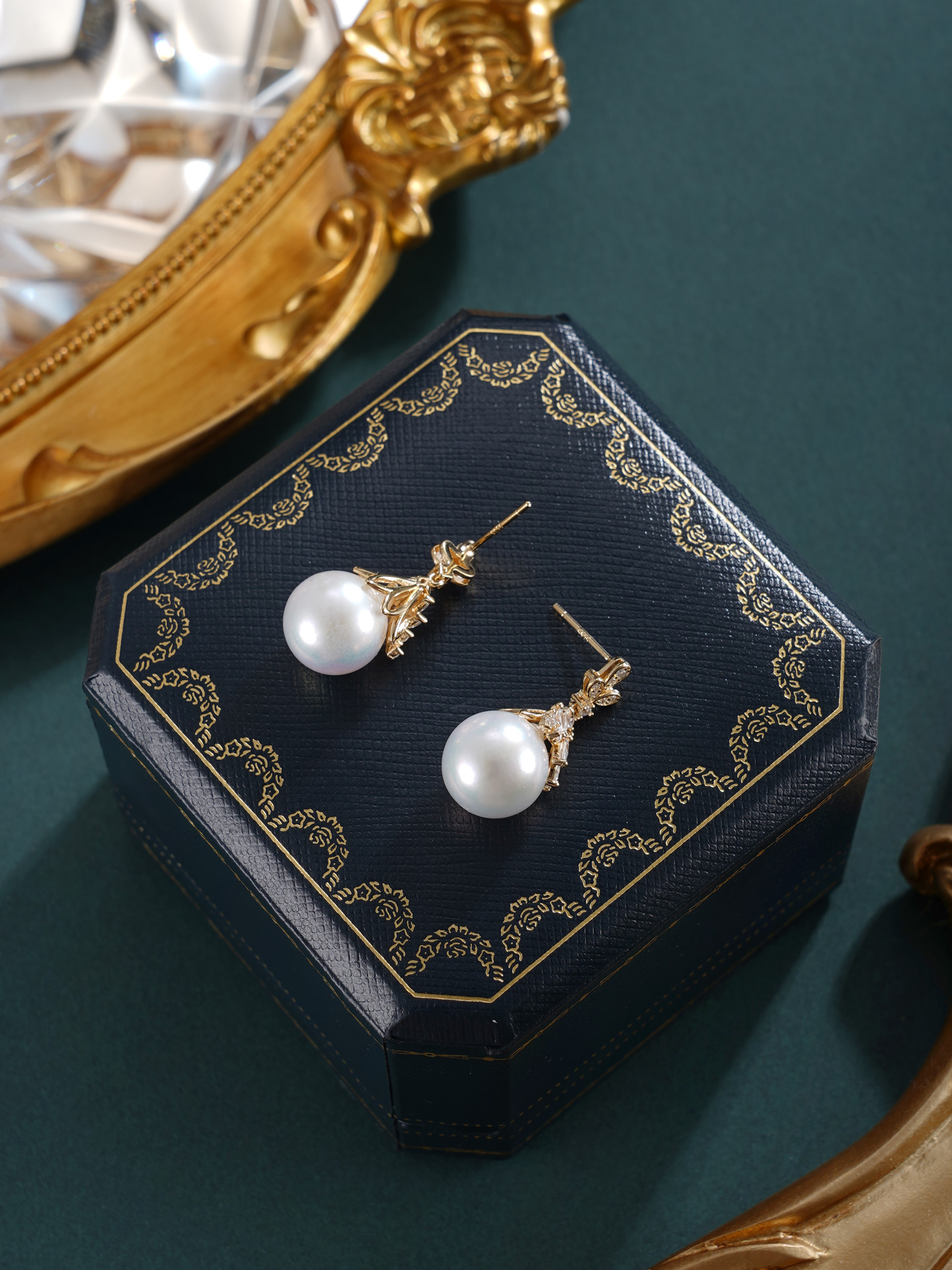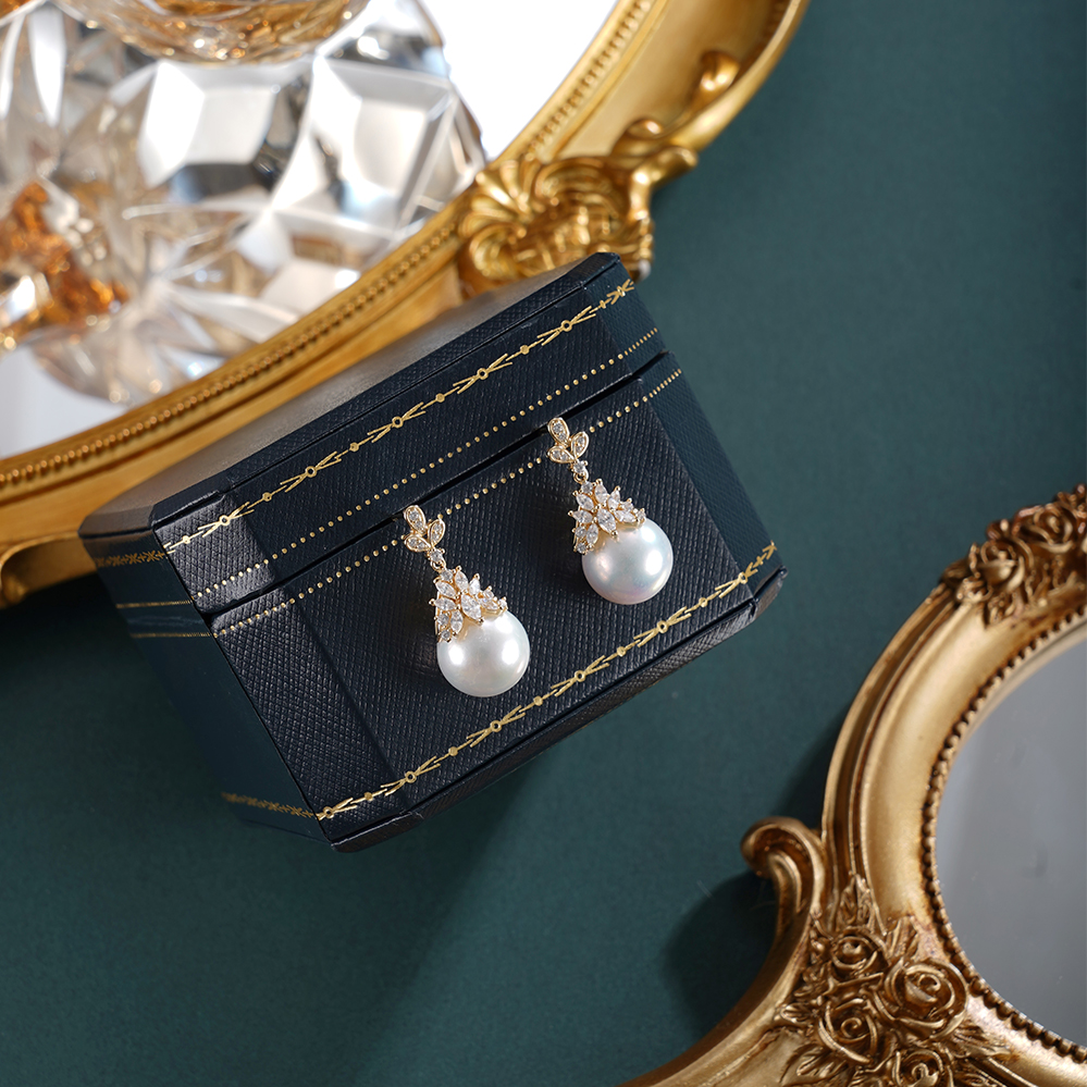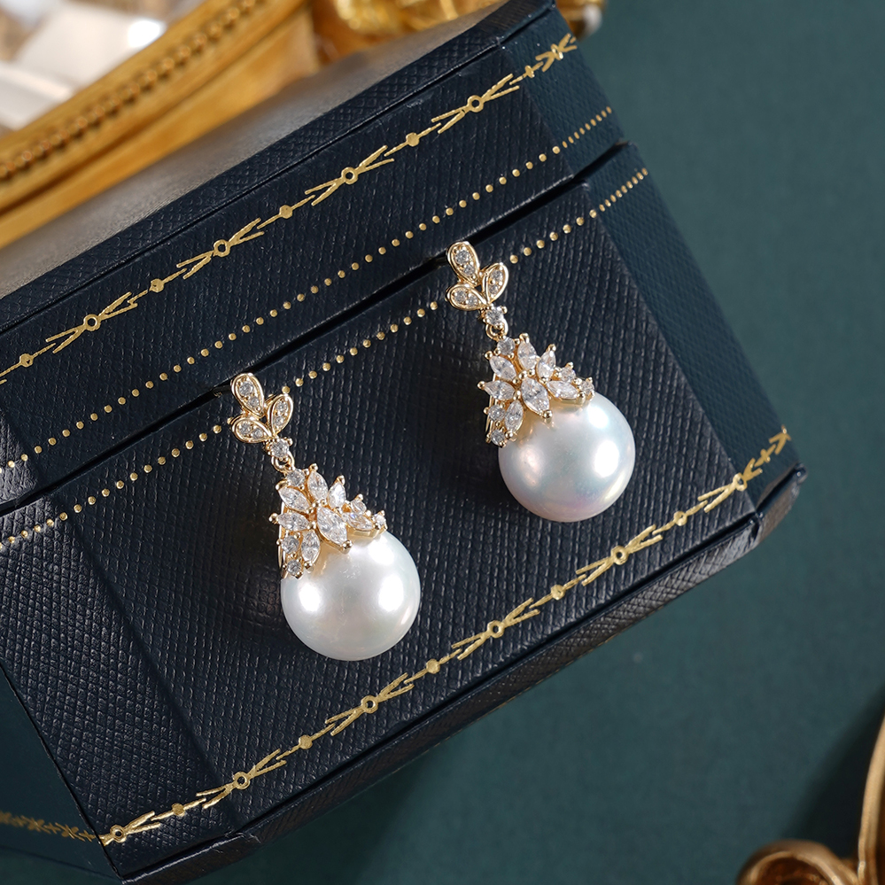 子佩集【秾华因缘】银S925珍珠惜王妃耳钉【YE0634】11.5mm珠镀金吊球宝塔2601