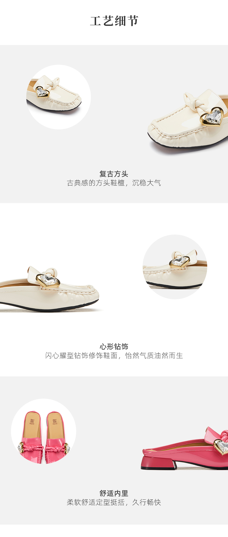 西村名物2023夏季新款真皮蝴蝶结水钻方头气质平底穆勒鞋女13291