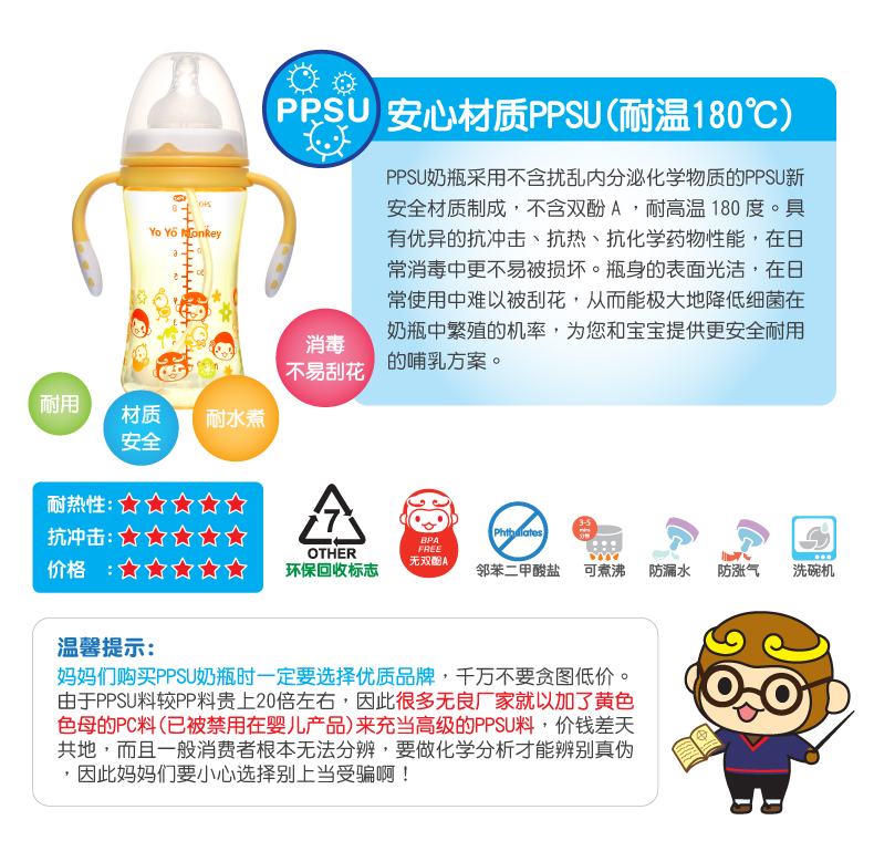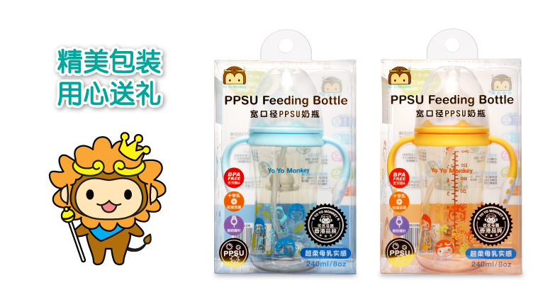 Yo Yo Monkey宽口PPSU奶瓶MS2063-01BI/02BI#240ML