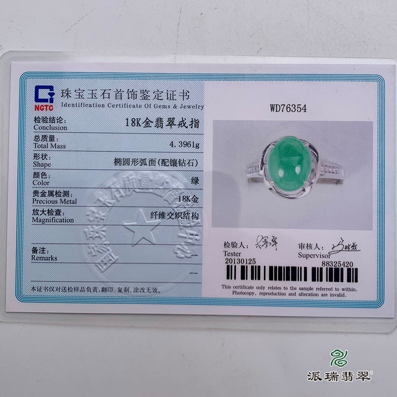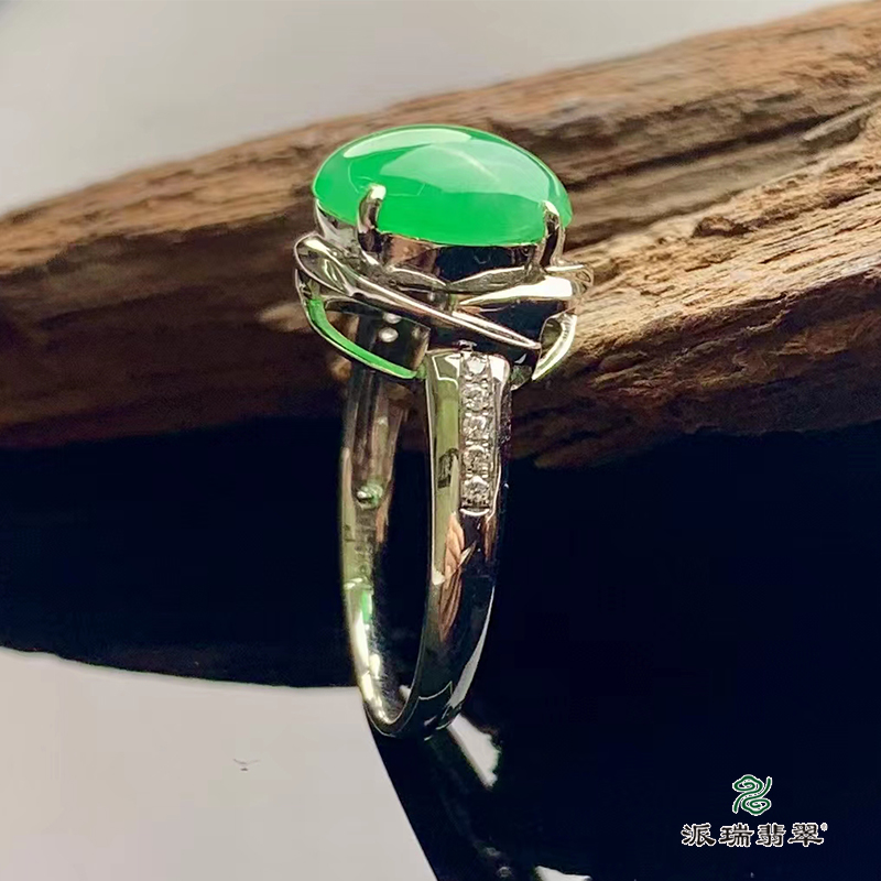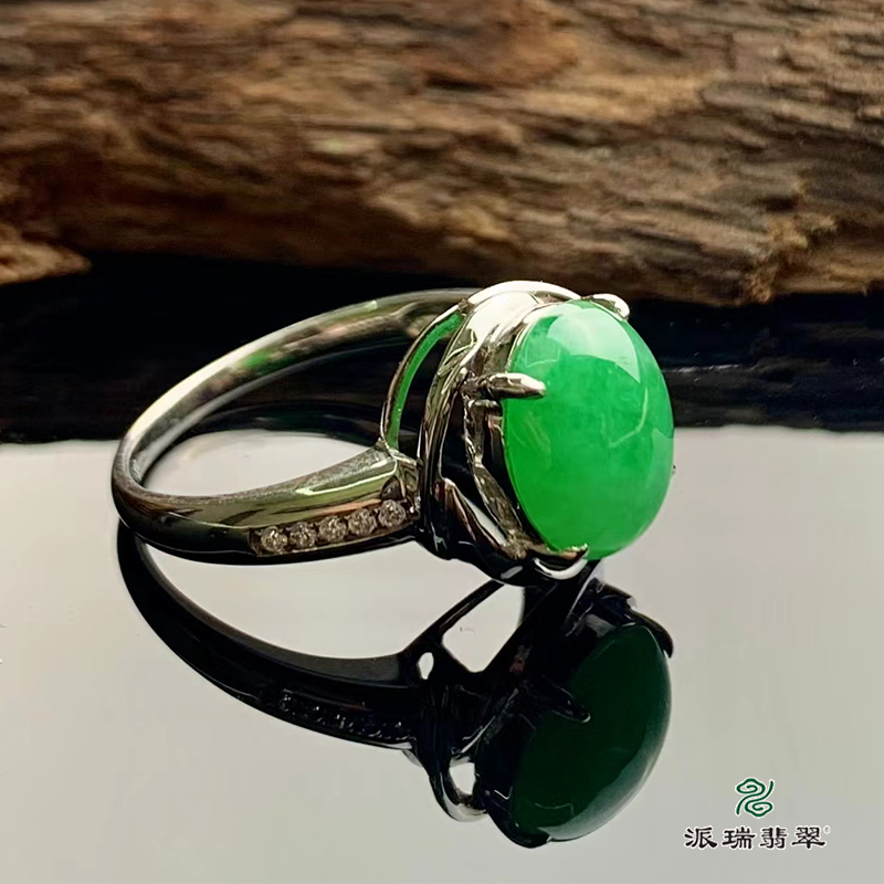 派瑞翡翠 18k金翡翠戒指 糯种 阳绿色