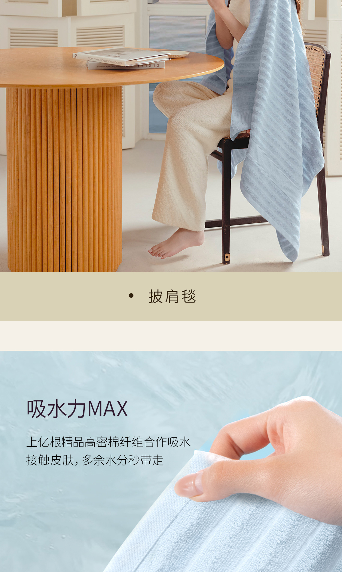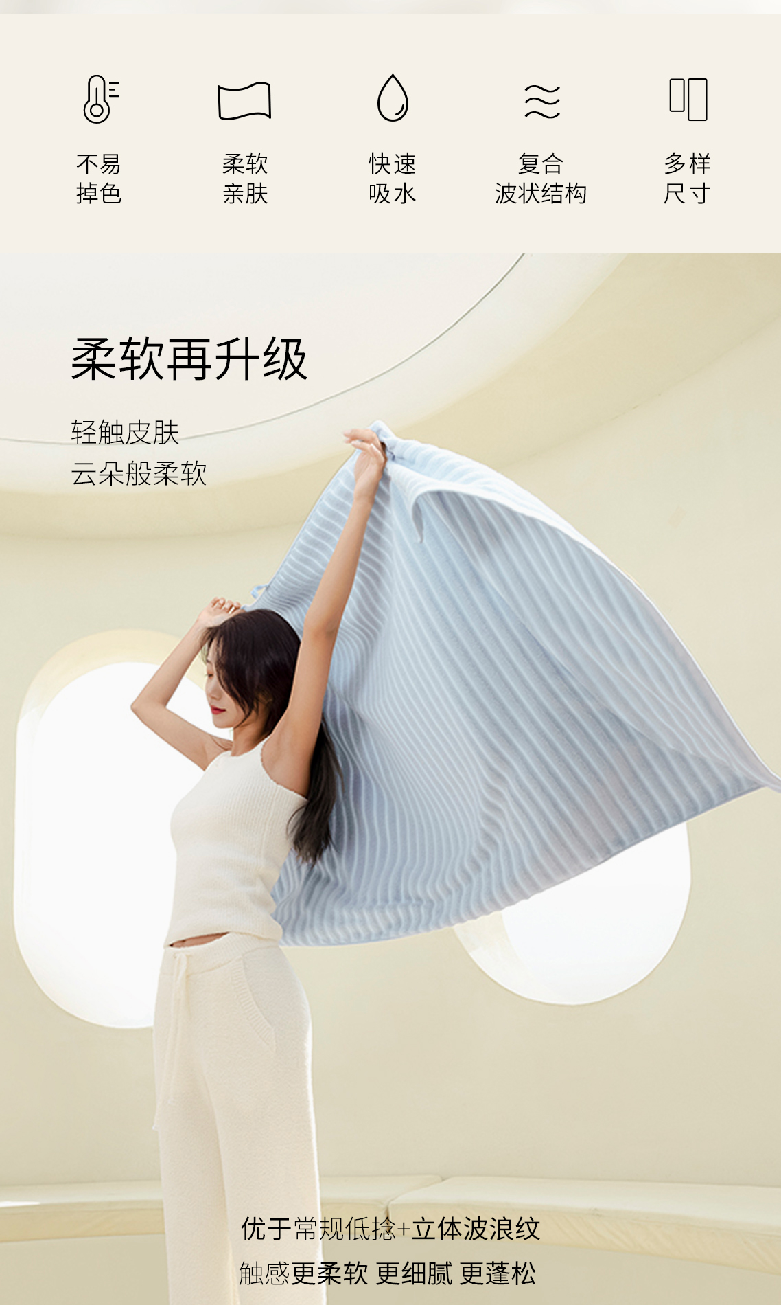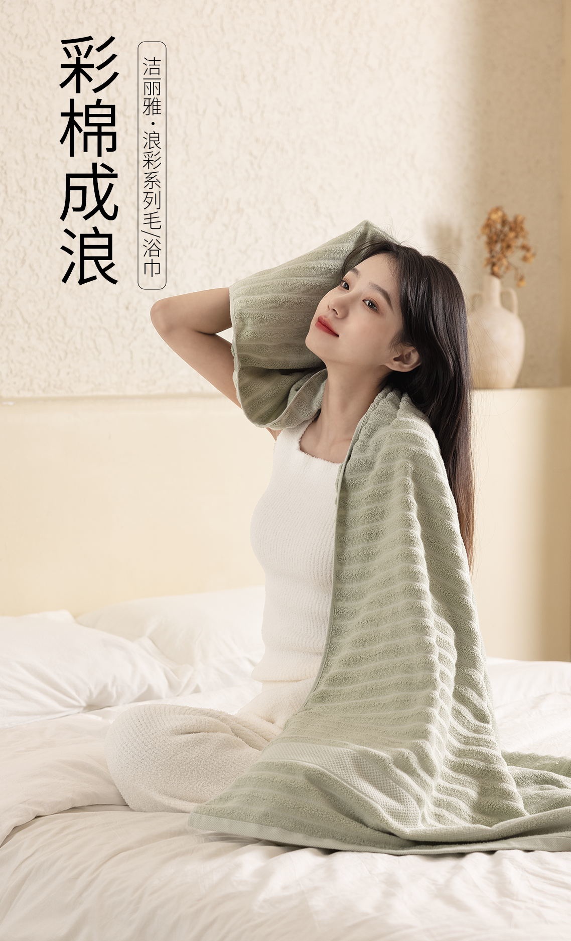 洁丽雅纯棉浴巾波浪纹吸水成人加厚不易掉毛母婴亲肤游泳裹身洗澡