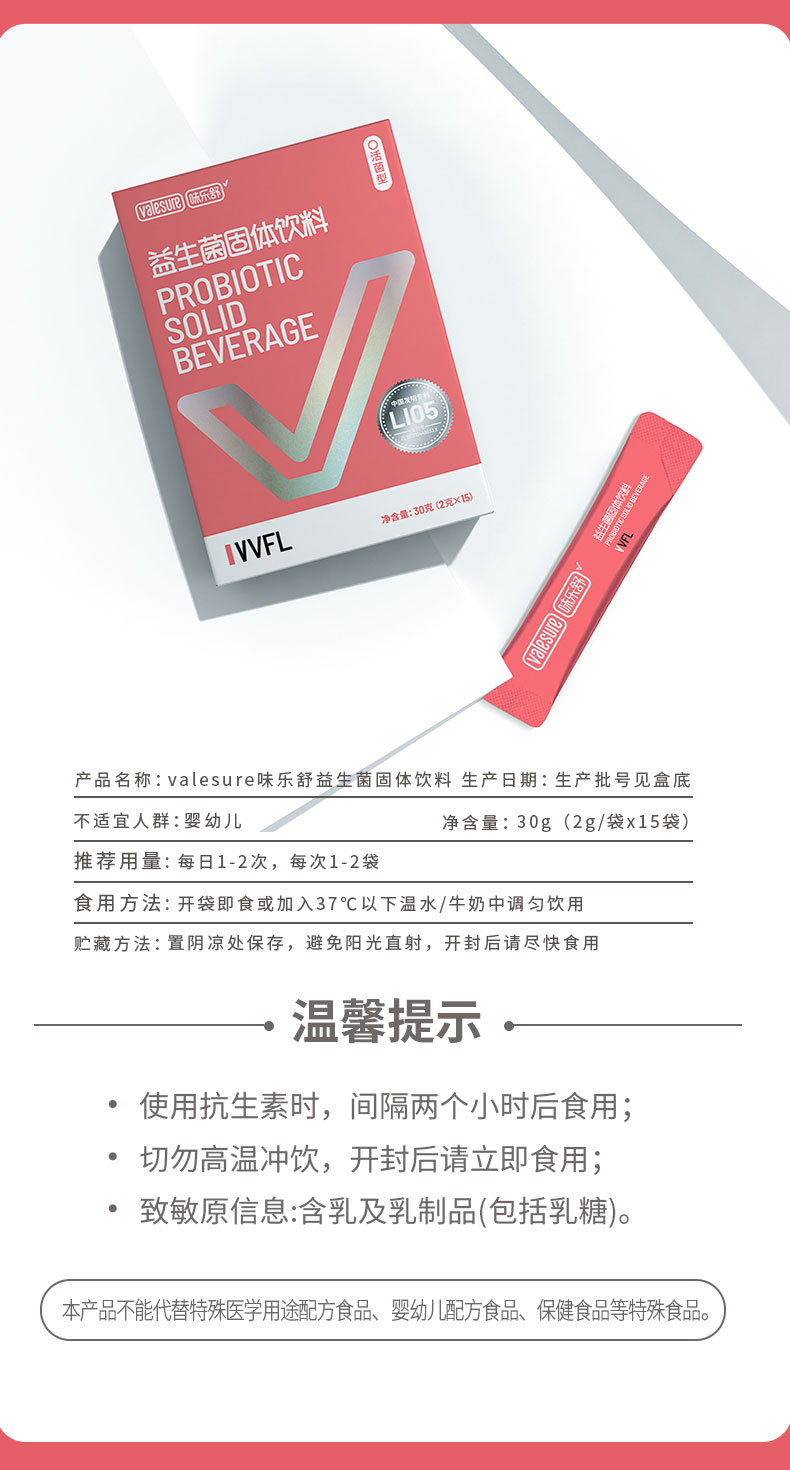 Valesure味乐舒益生菌固体饮料 VVFL 2g*5支/2g*15支