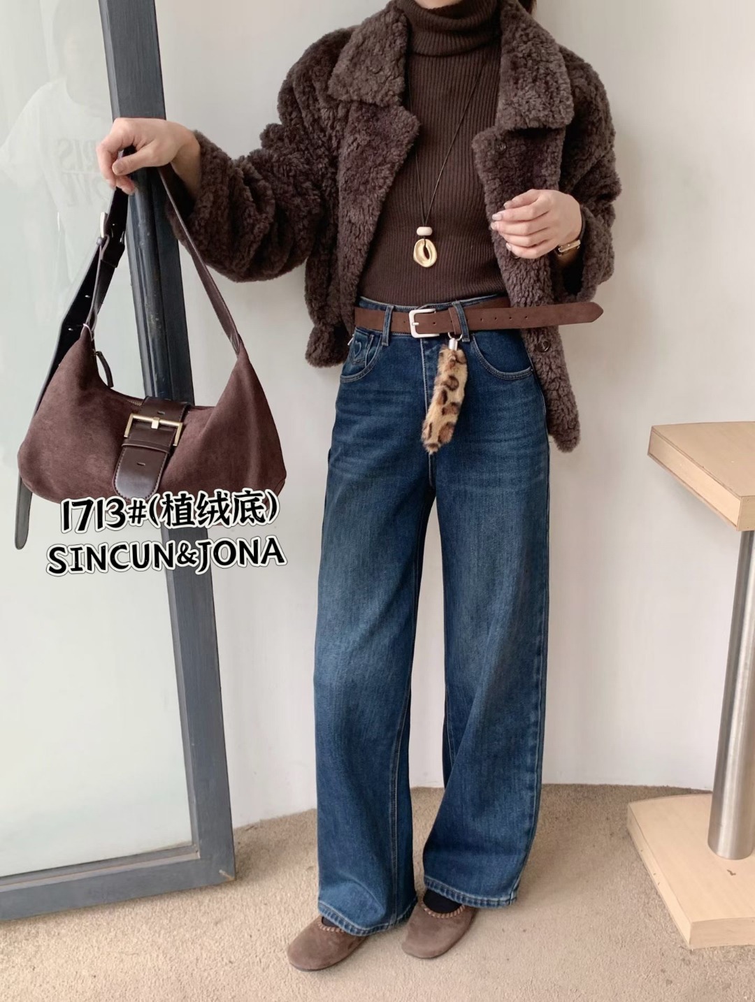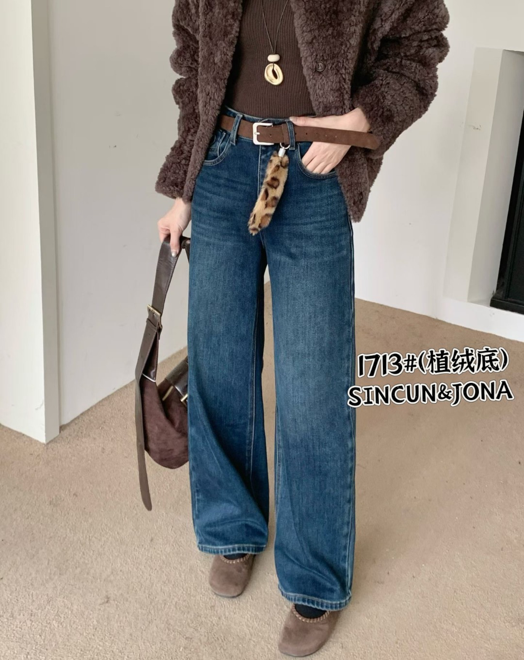 1713# 秋冬必备!美式复古抓绒牛仔裤,版型超正 这款牛仔裤采用高腰设计,穿上后不仅显瘦还特别显高