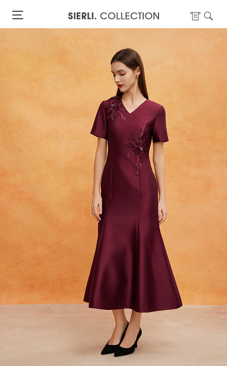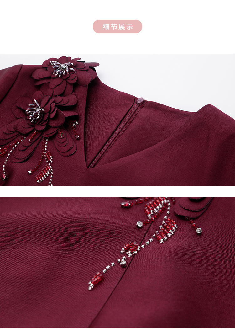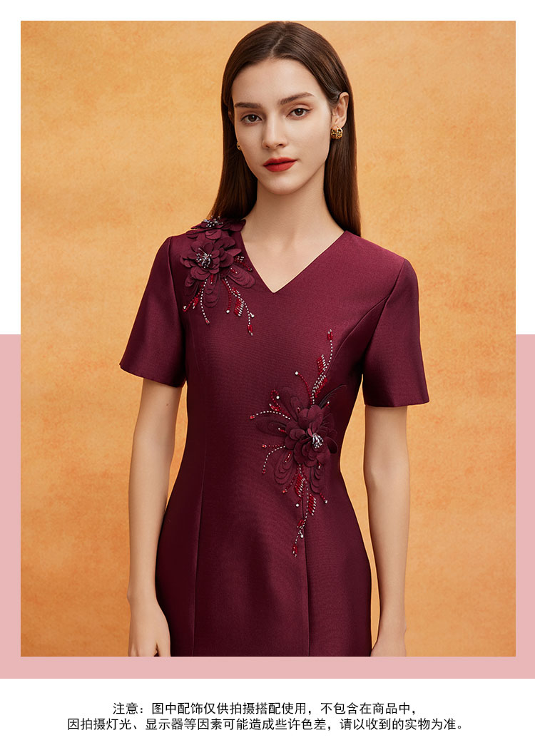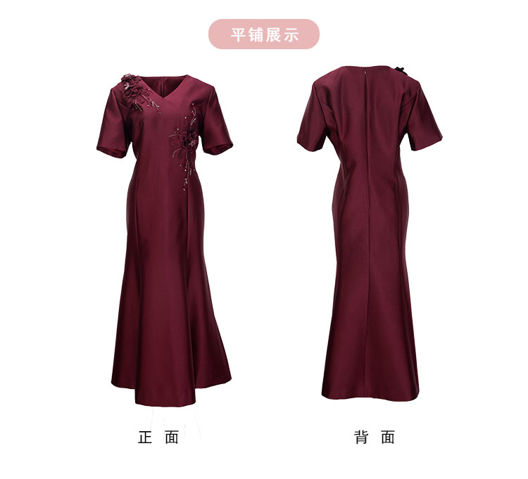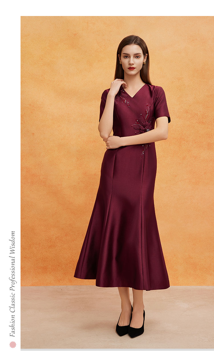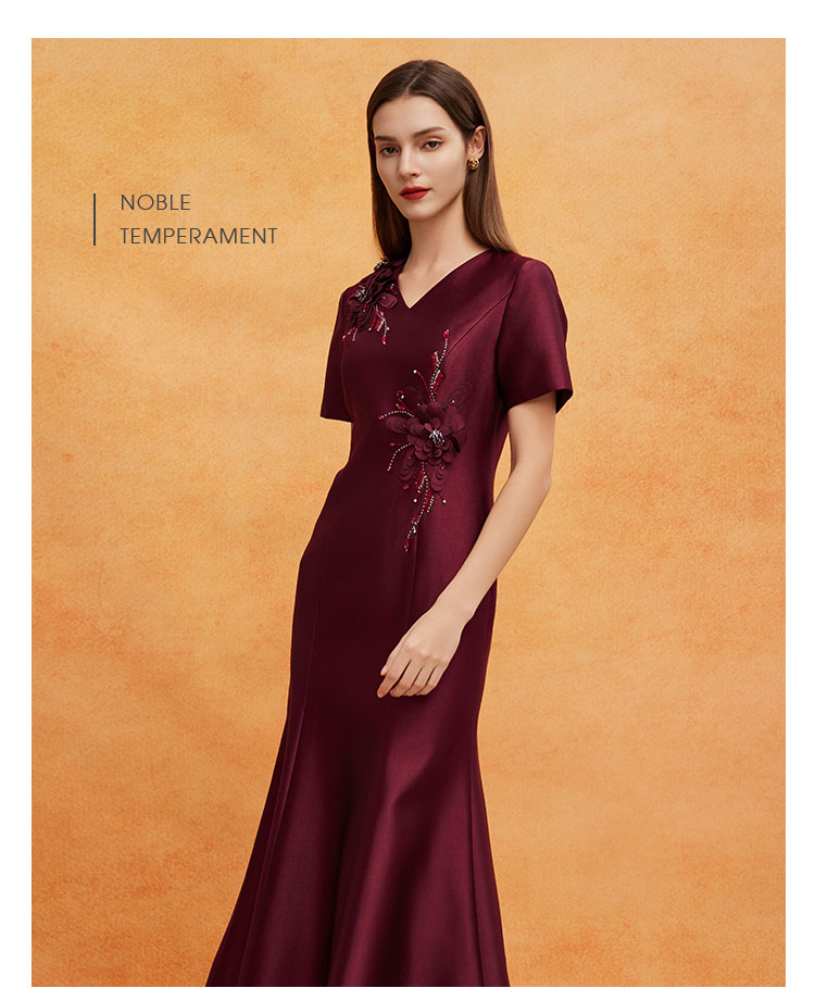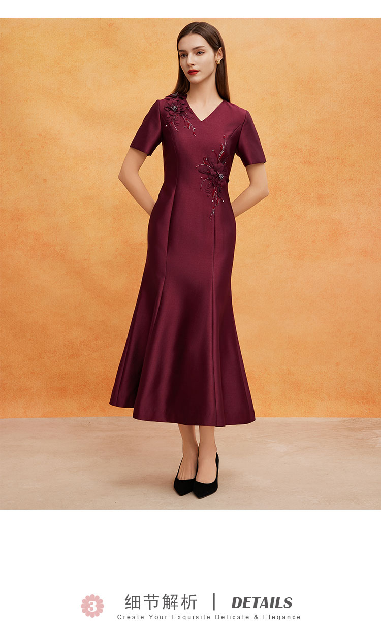 QF807斯尔丽2025新款宴会礼服手工立体刺绣高端大气喜妈妈修身连衣裙