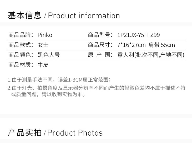 【香港直邮】Pinko 品高 女士Baby Love系列Simply黑色斜挎包 1P21JX-Y5FFZ99