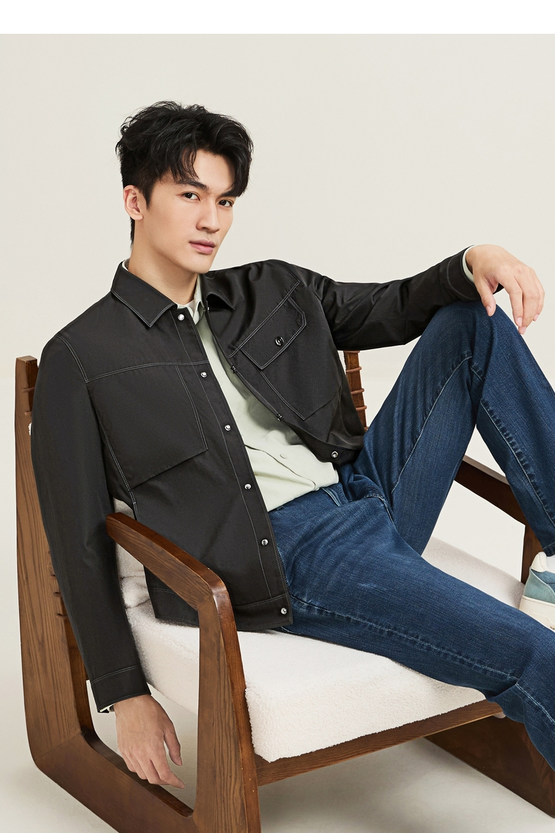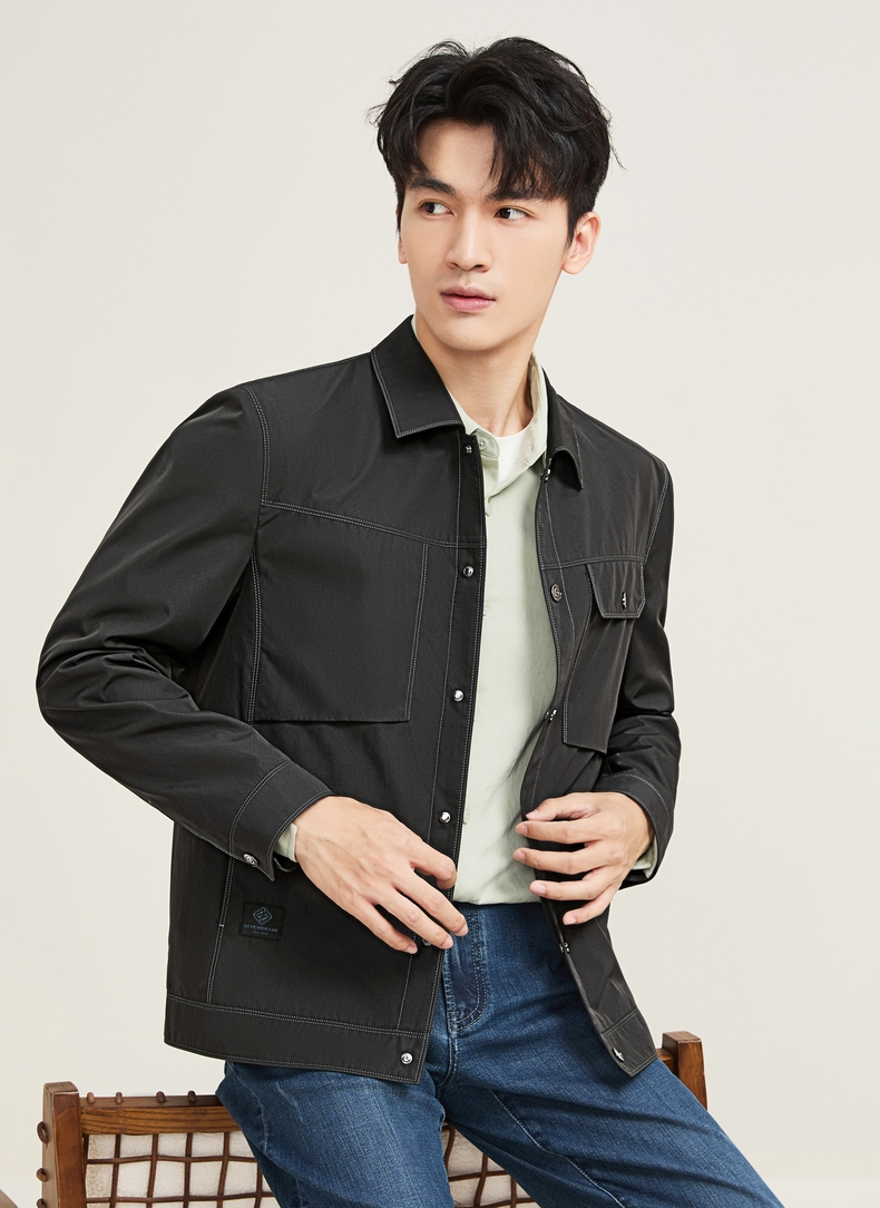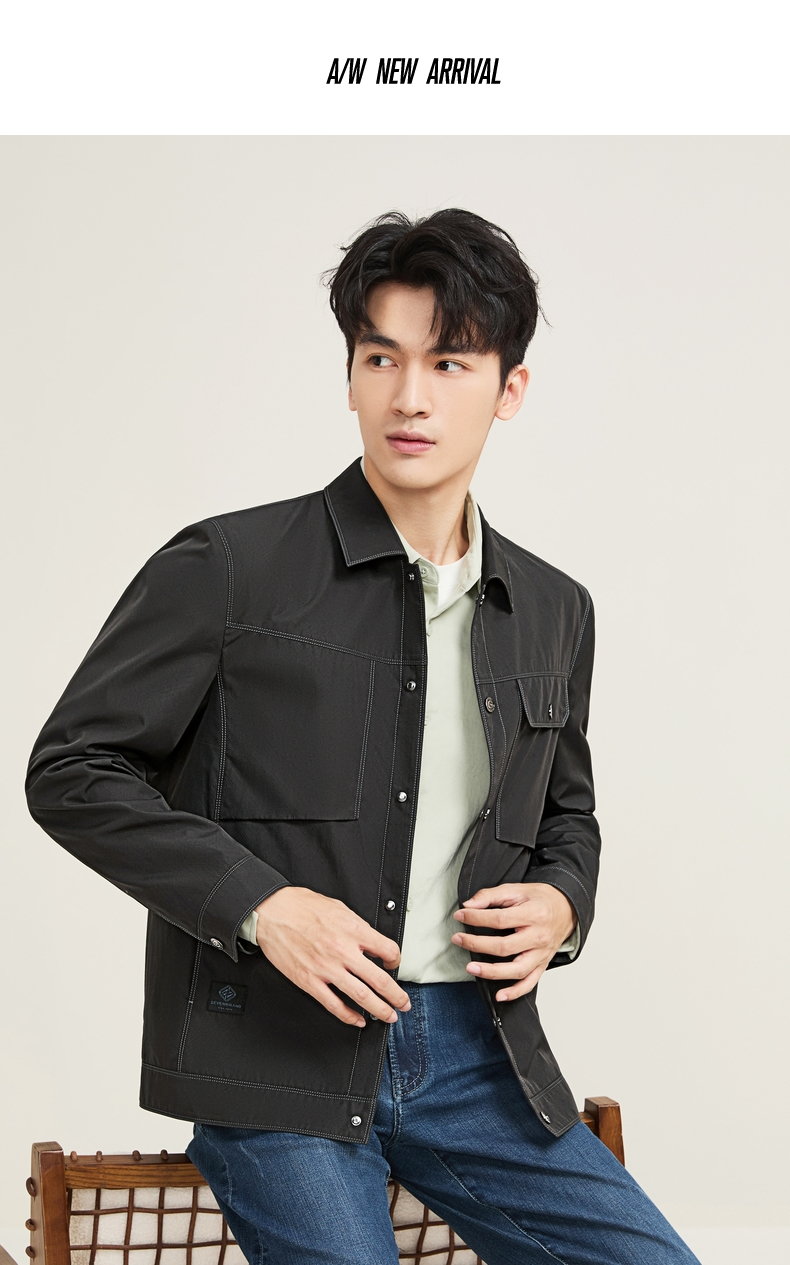 【满身提花工装茄克】柒牌男式翻领夹克秋季休闲易打理夹克衫外套129K70270