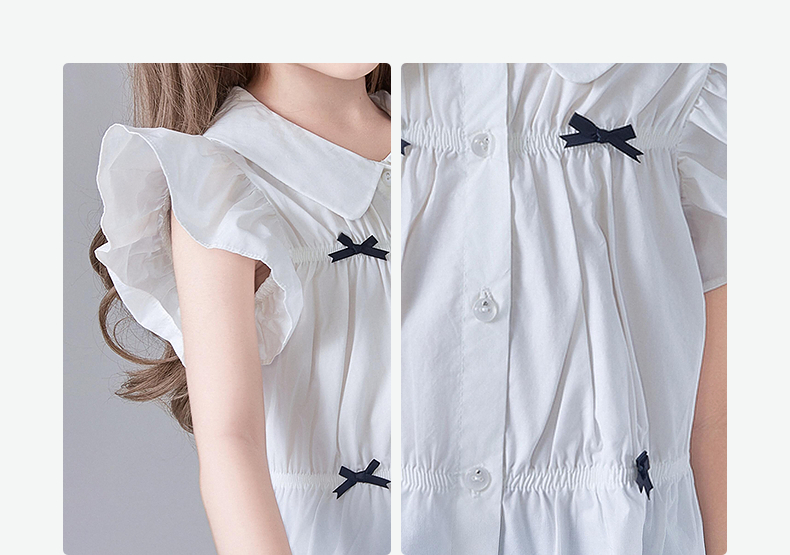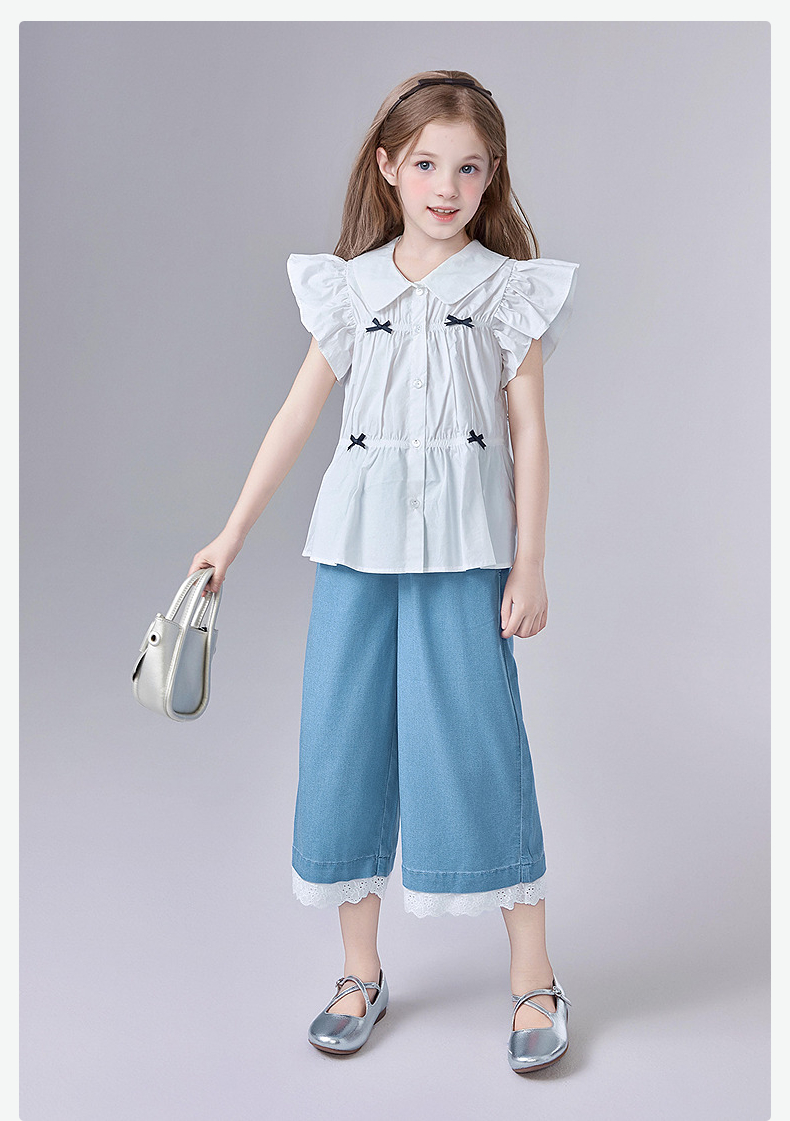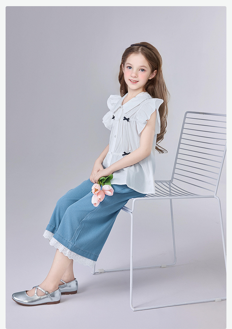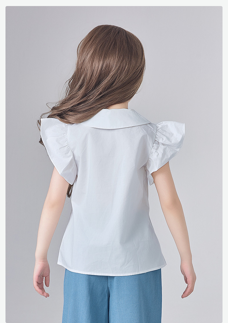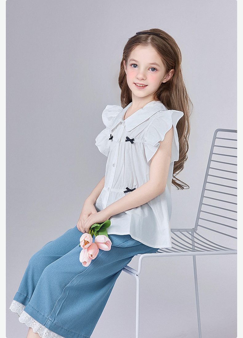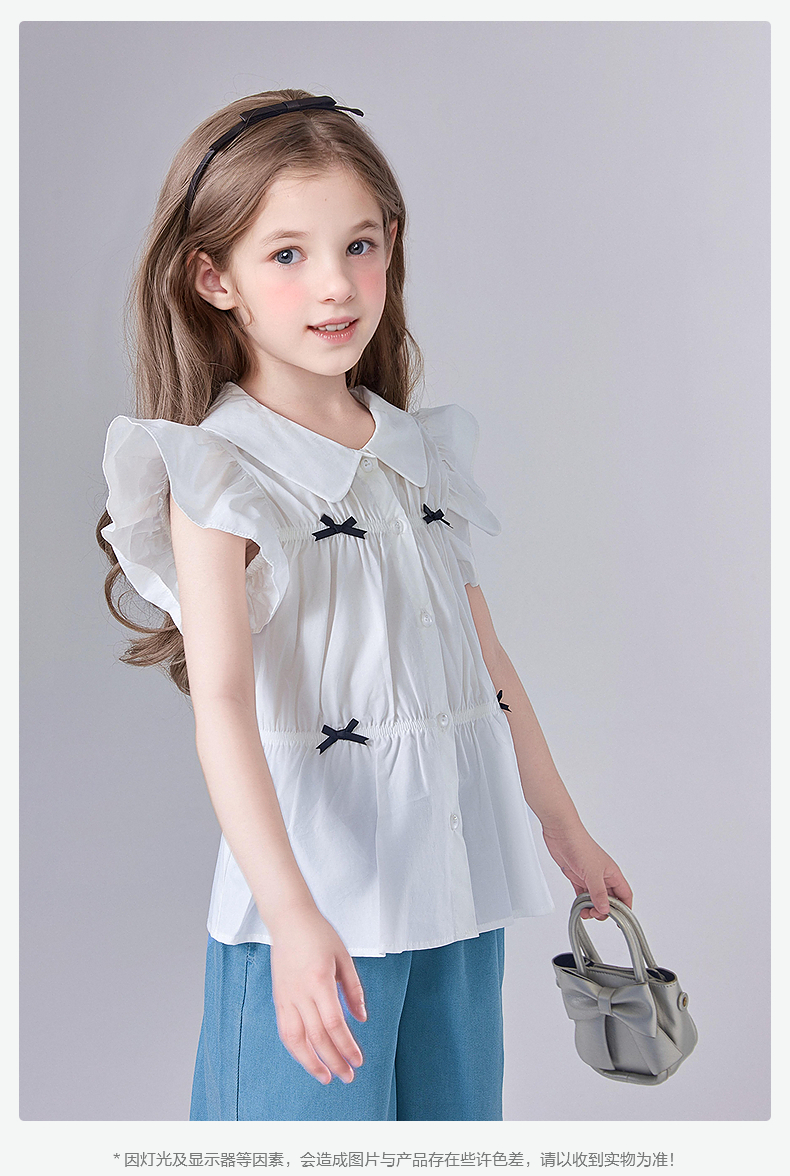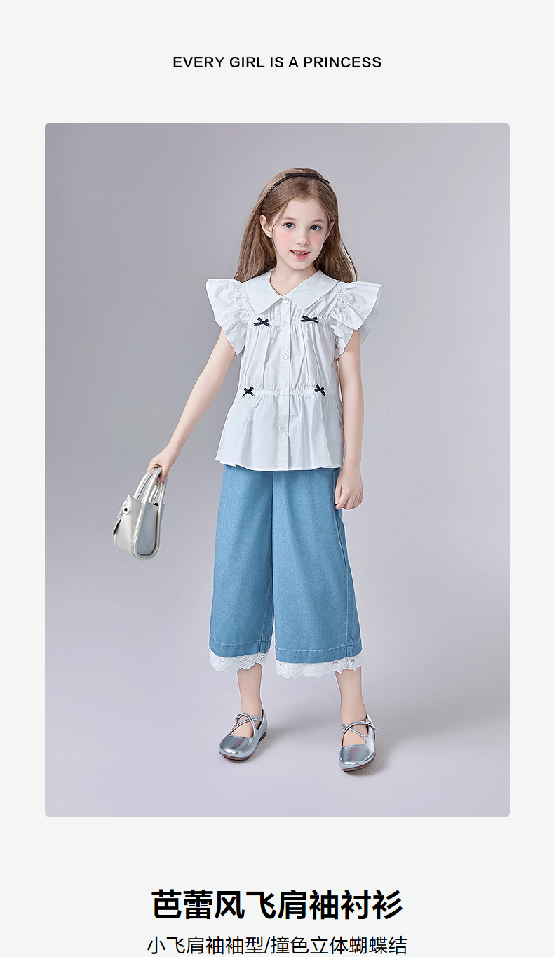 笛莎Deesha 童装女童衬衫2025夏新款女童芭蕾风飞肩袖衬衫