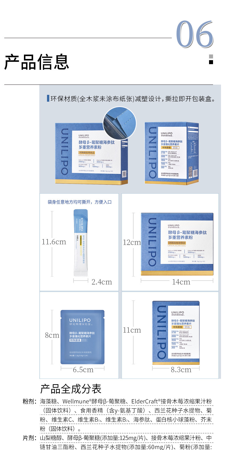 「特膳版酵母β葡聚糖」UNILIPO研知有理 酵母β葡聚糖海参萝卜硫苷营养素粉/片
