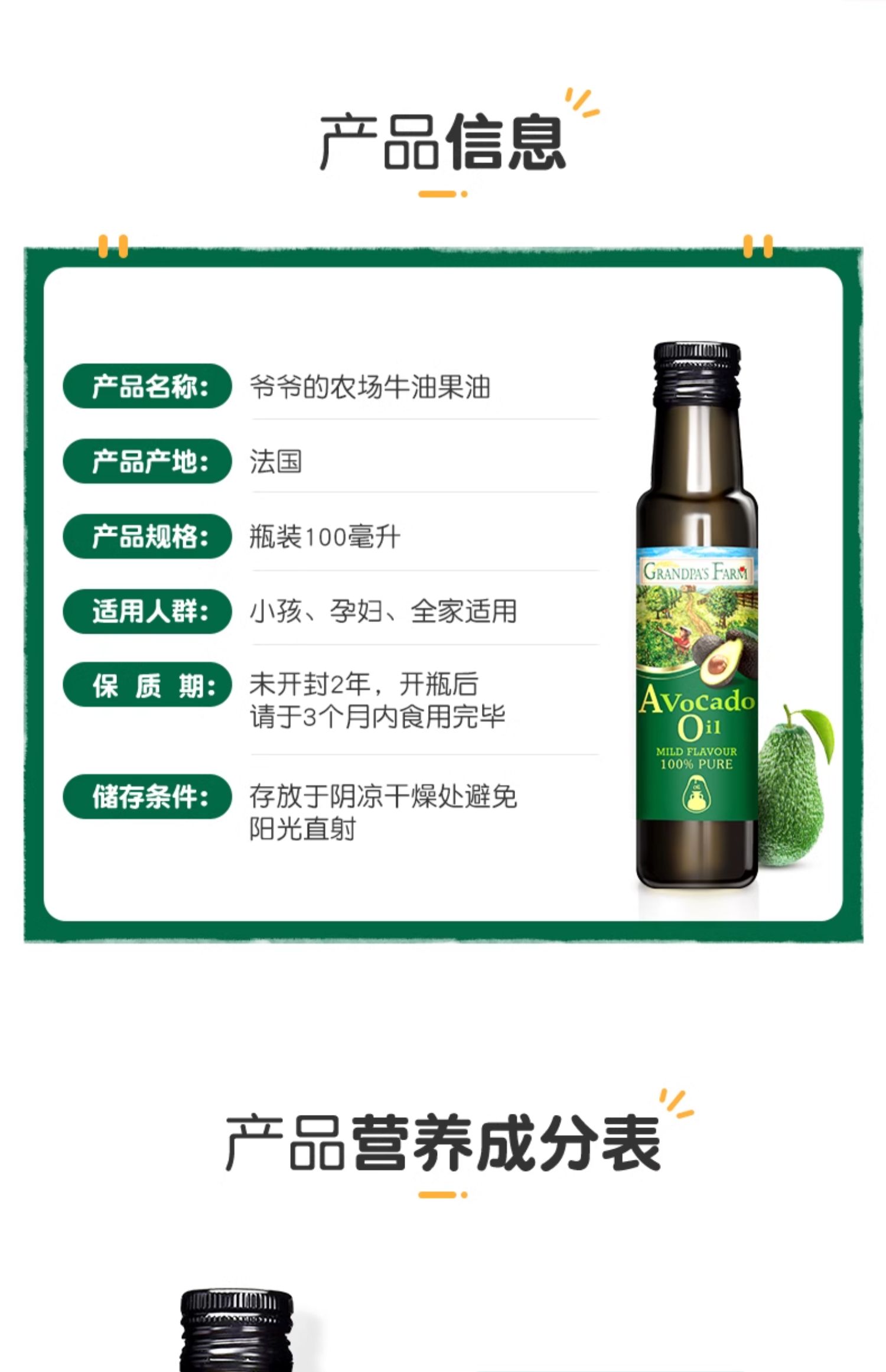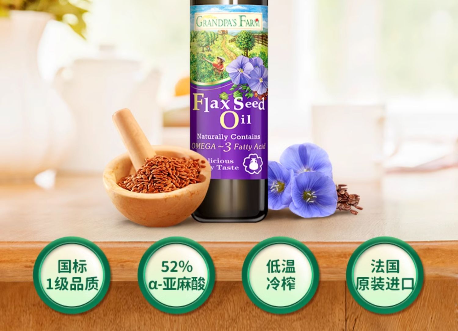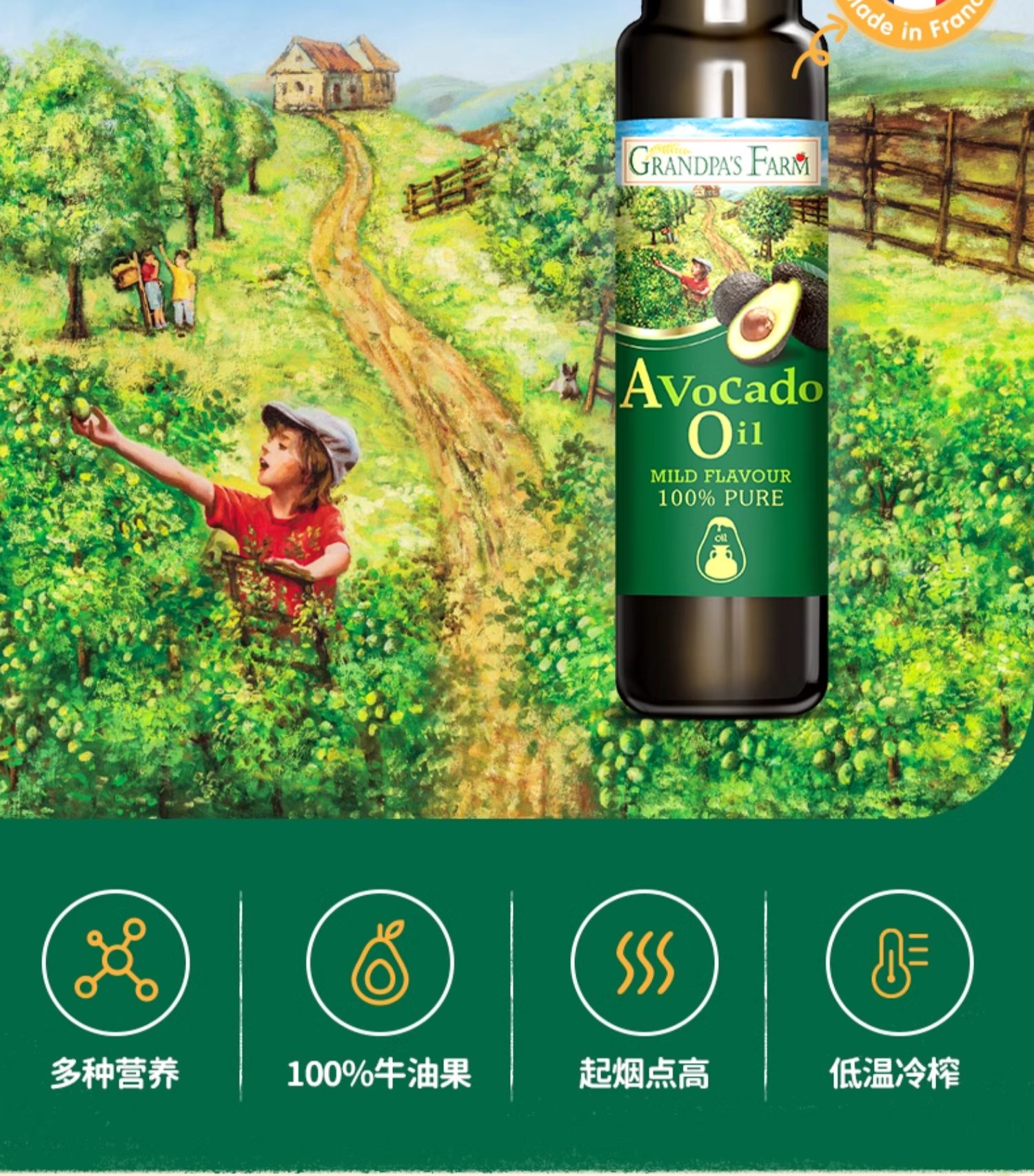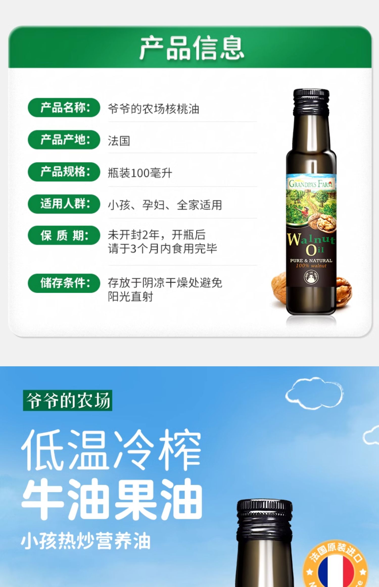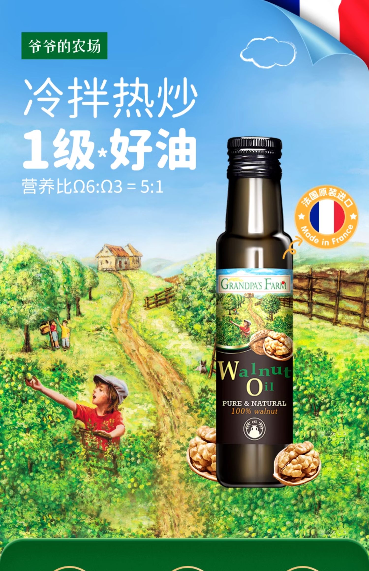 法国爷爷的农场核桃油牛油果油亚麻籽油宝宝热炒辅食用油