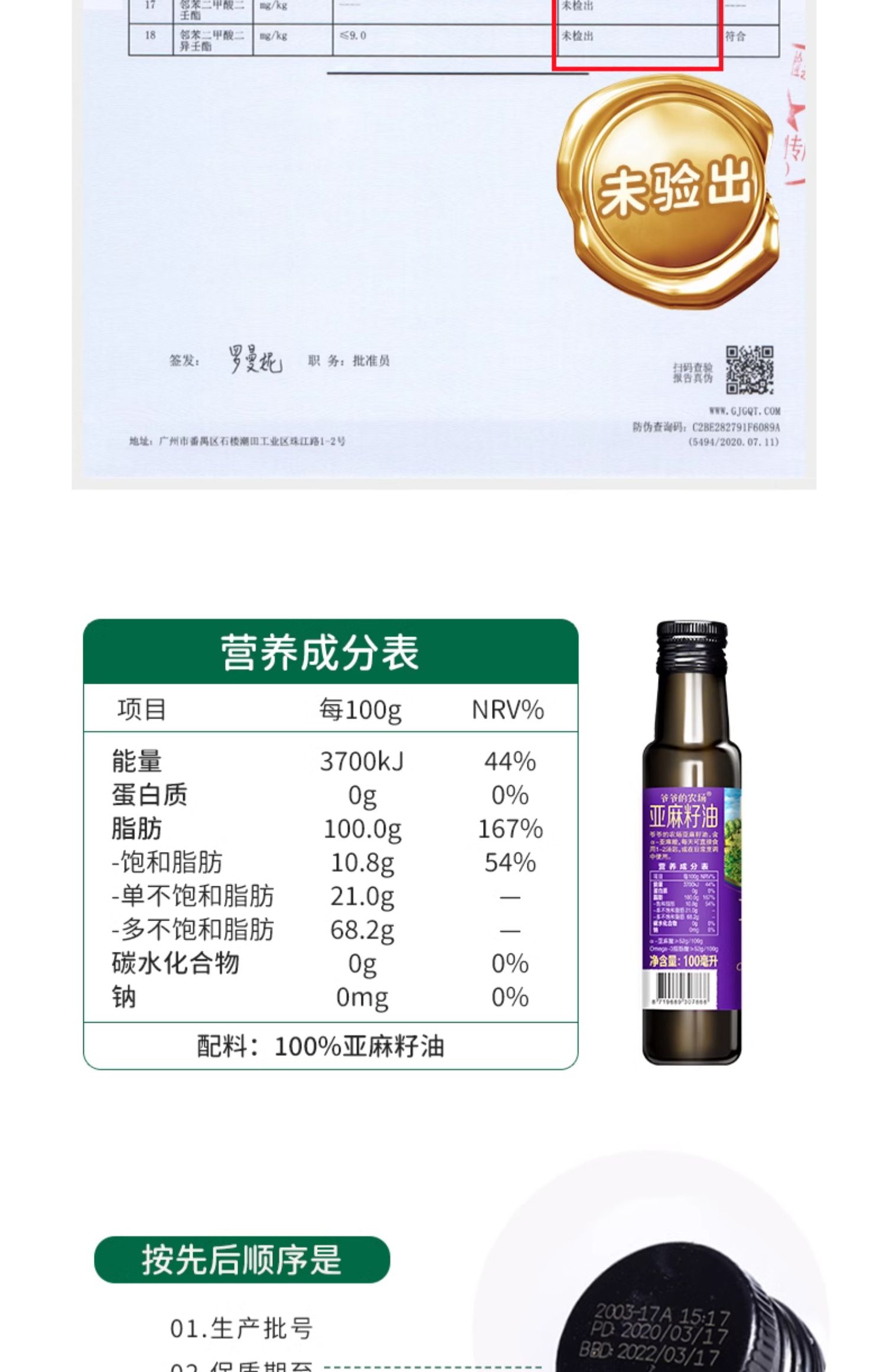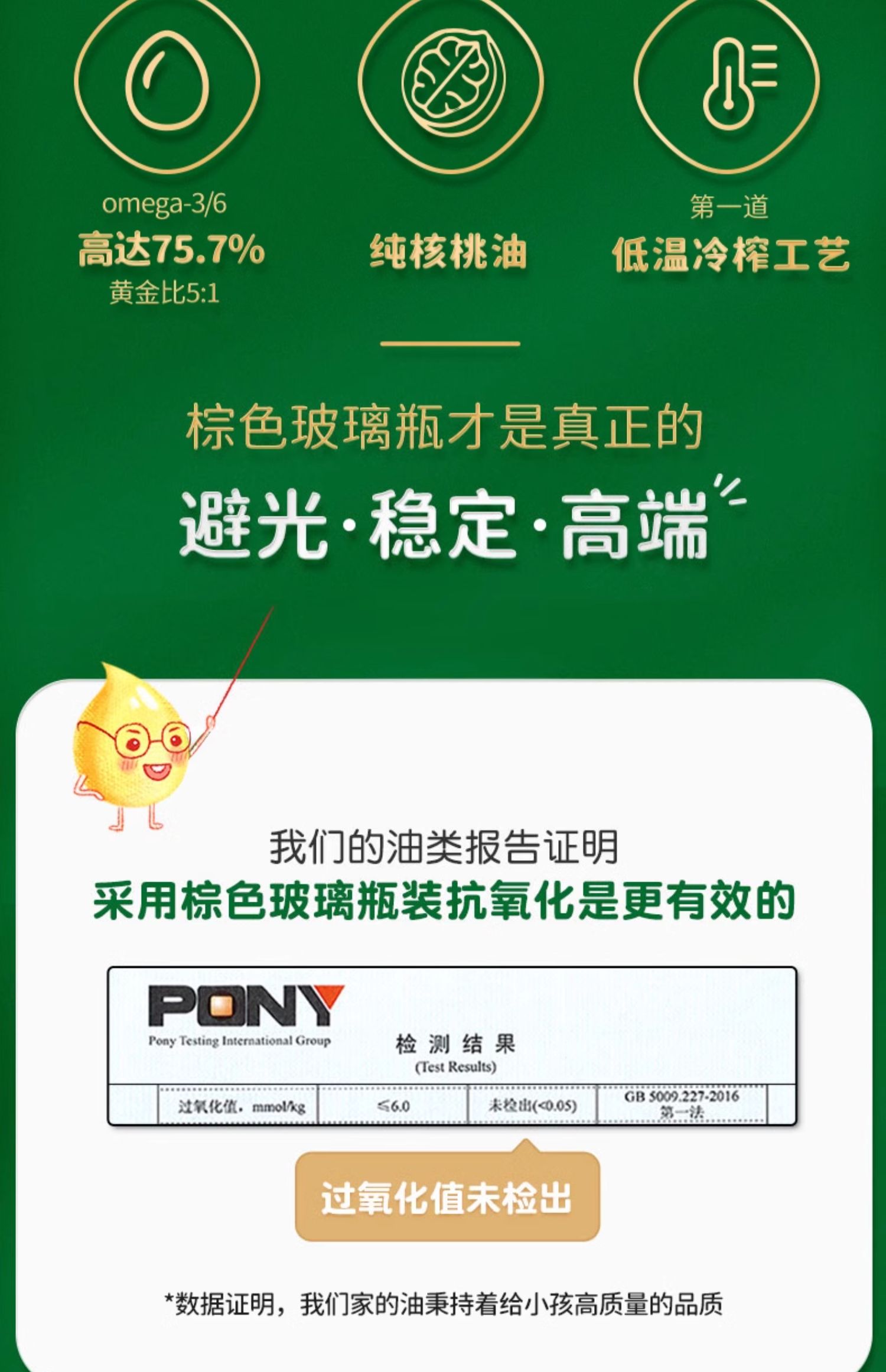 保质期:核桃油/牛油果油:2年;亚麻籽油:18个月建议收到后尽快食用。