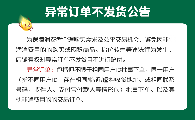 1、本产品下单后不支持7天无理由退换货,不支持拦截&拒收,不支持修改地址,执意拦截者需承担10元物流费,请您谨慎下单。