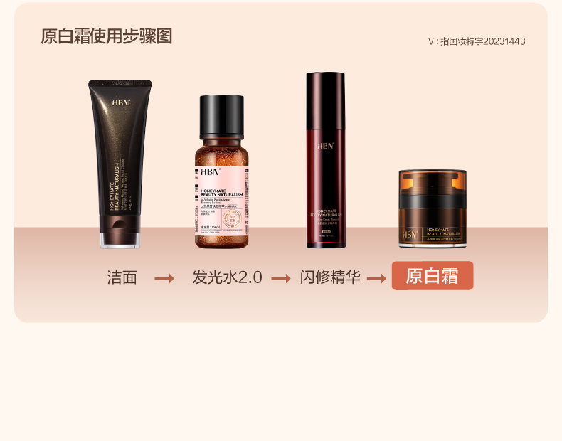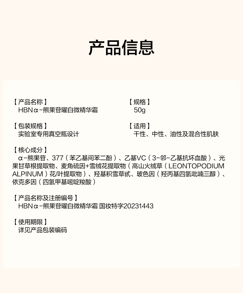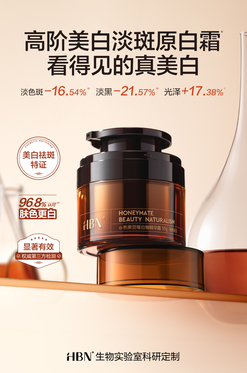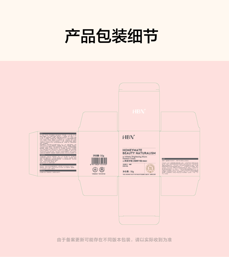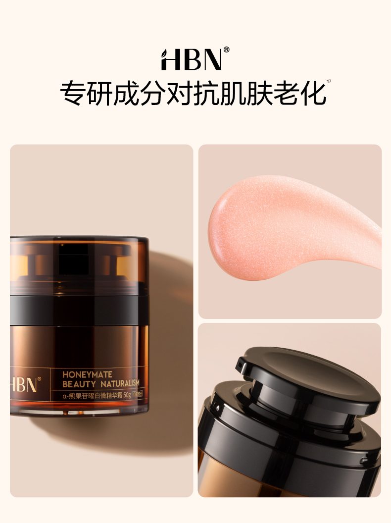 HBN原白霜熊果苷微精华霜50g 送白霜+精粹水+洁面乳 A-1948(效期27-12)