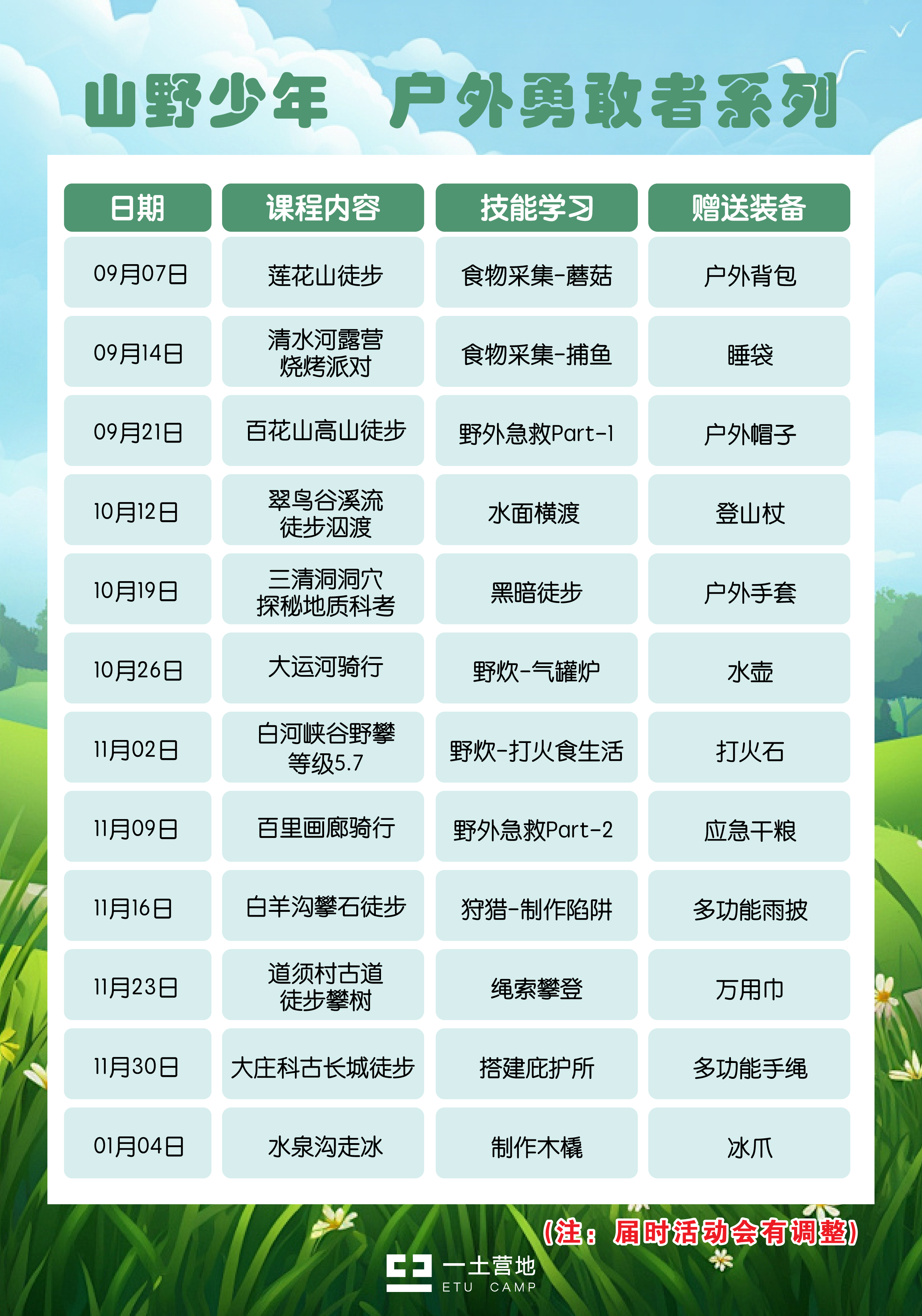 北京|勇敢者户外探索|户外与挑战系列|2025|周末课程