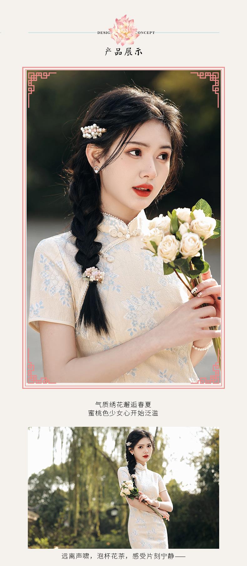 2023春夏新款复合蕾丝短款旗袍连衣裙 日常改良旗袍少女年轻款